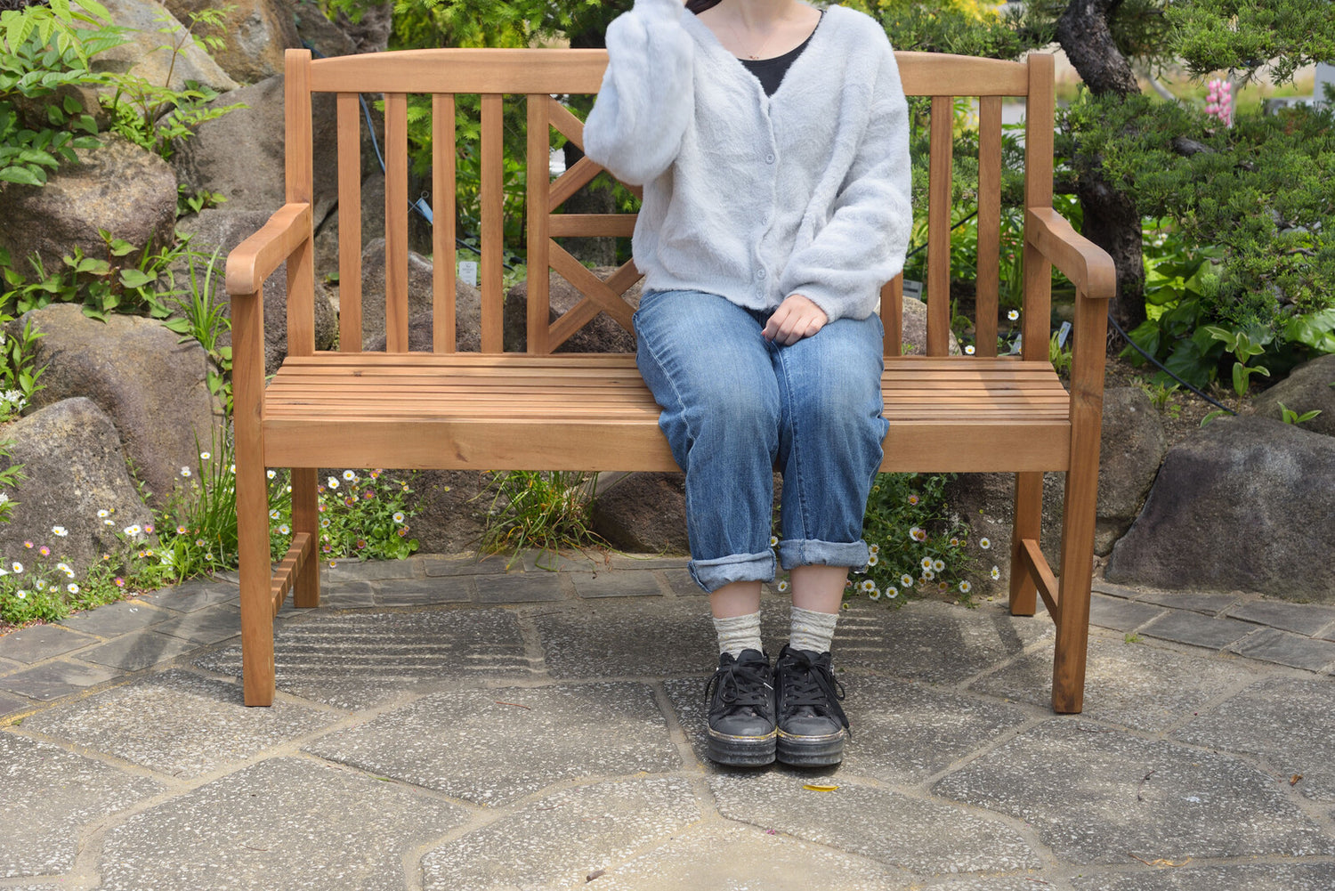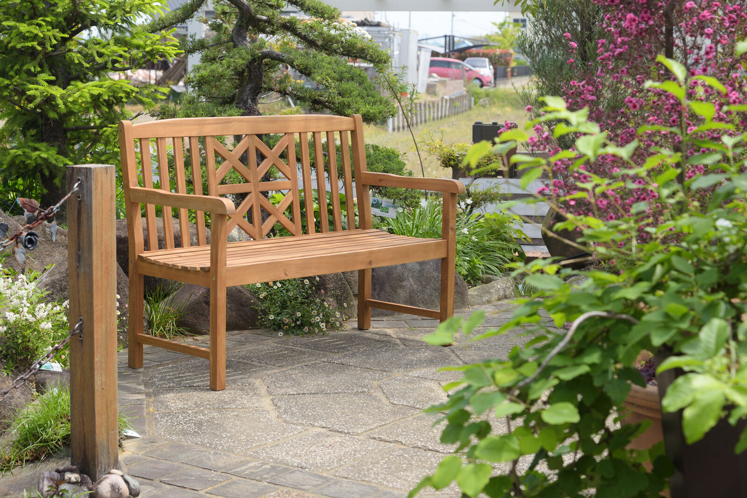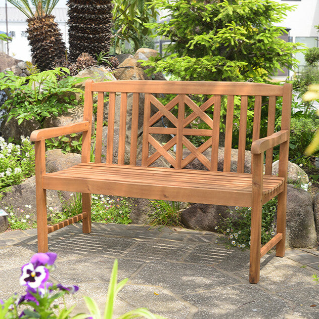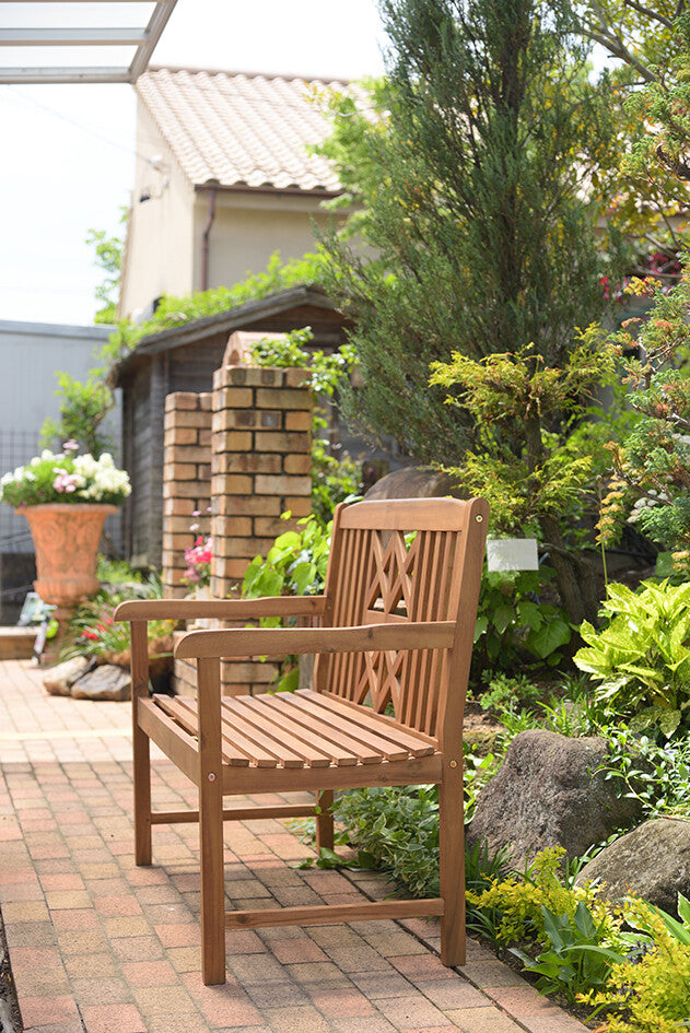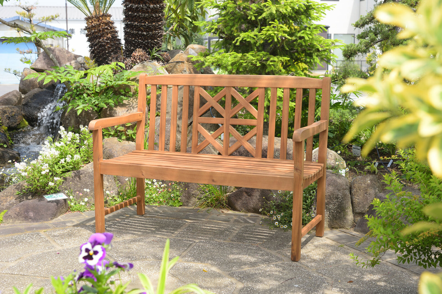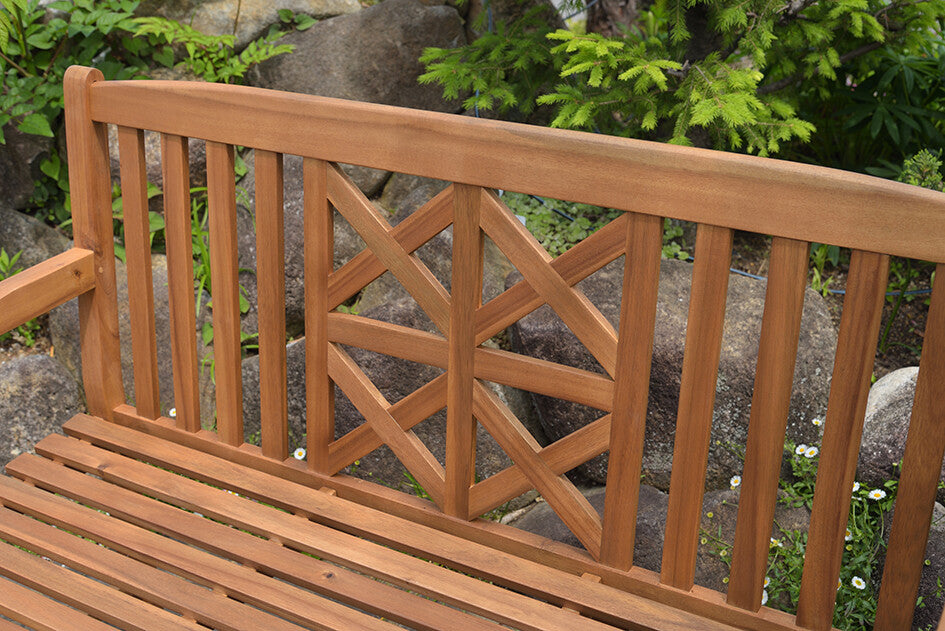 ベンチ 2人掛け 木製 肘付き ガーデン アウトドア アカシア 天然木 バルコニー ナチュラル