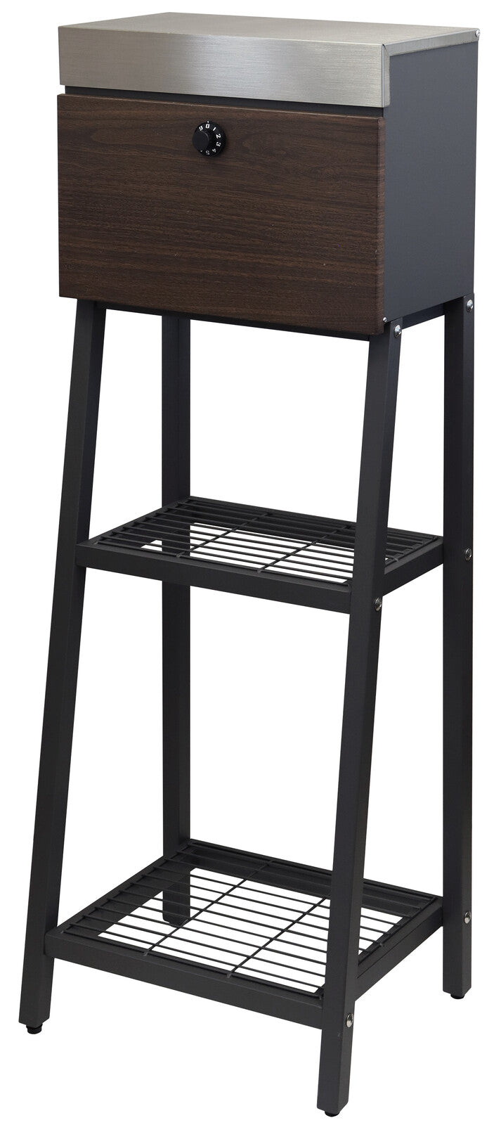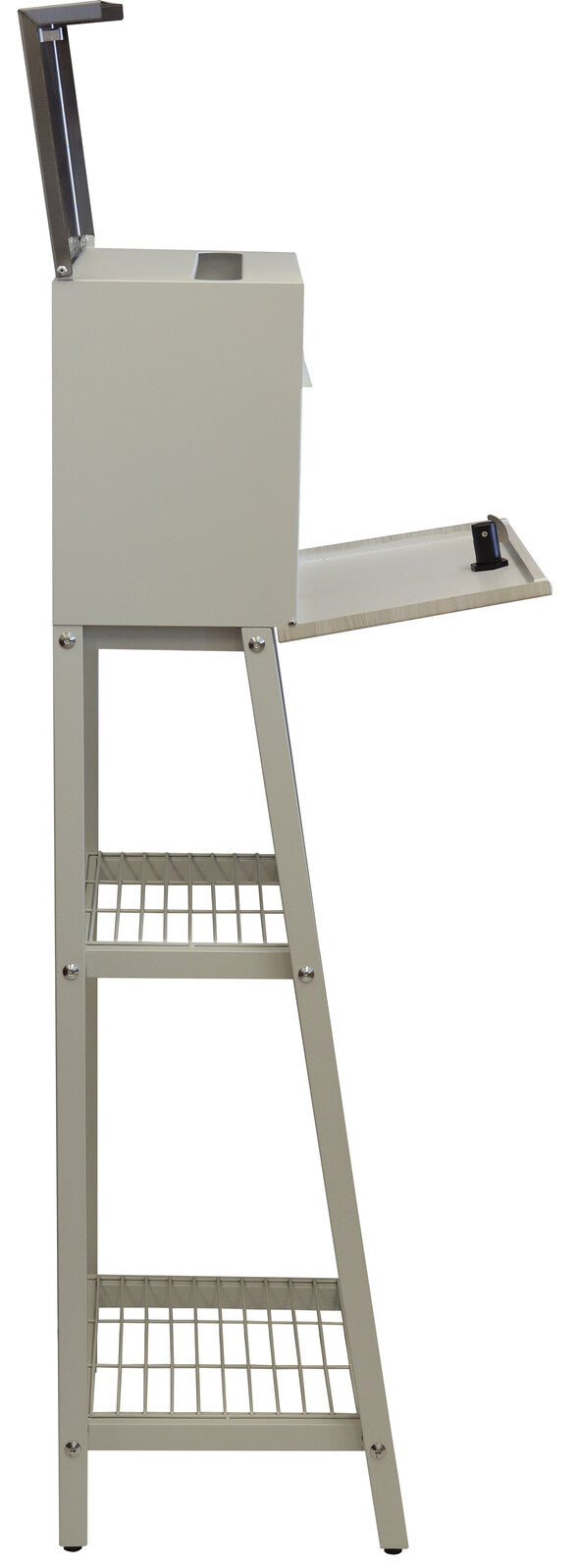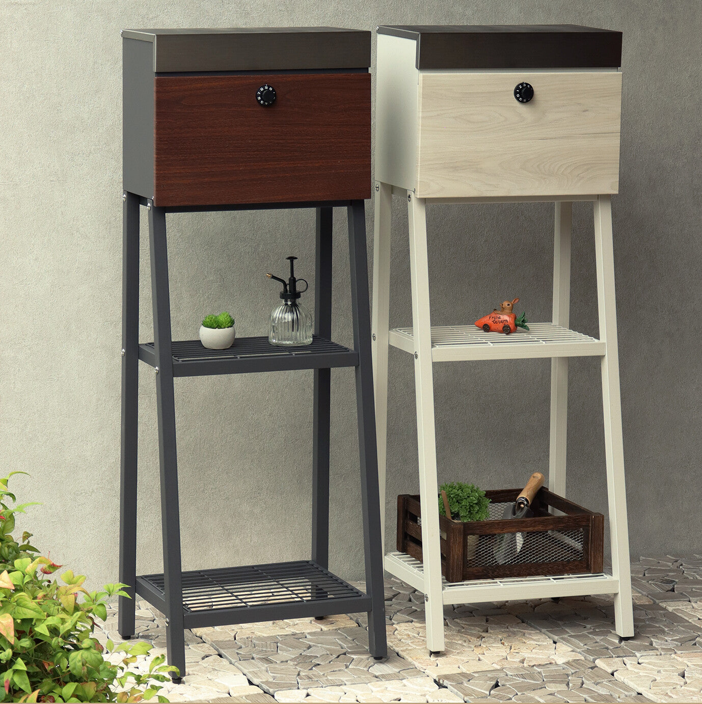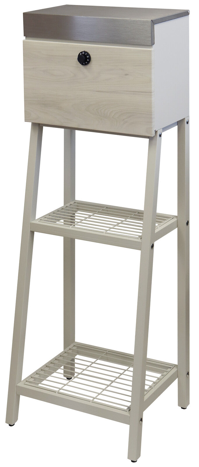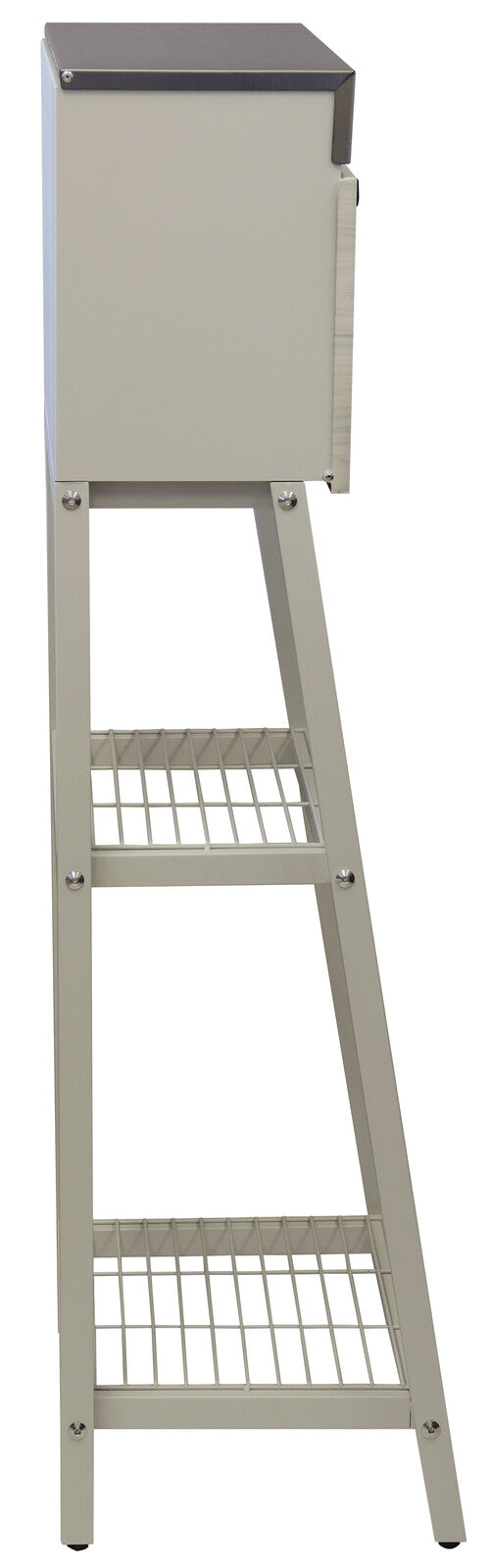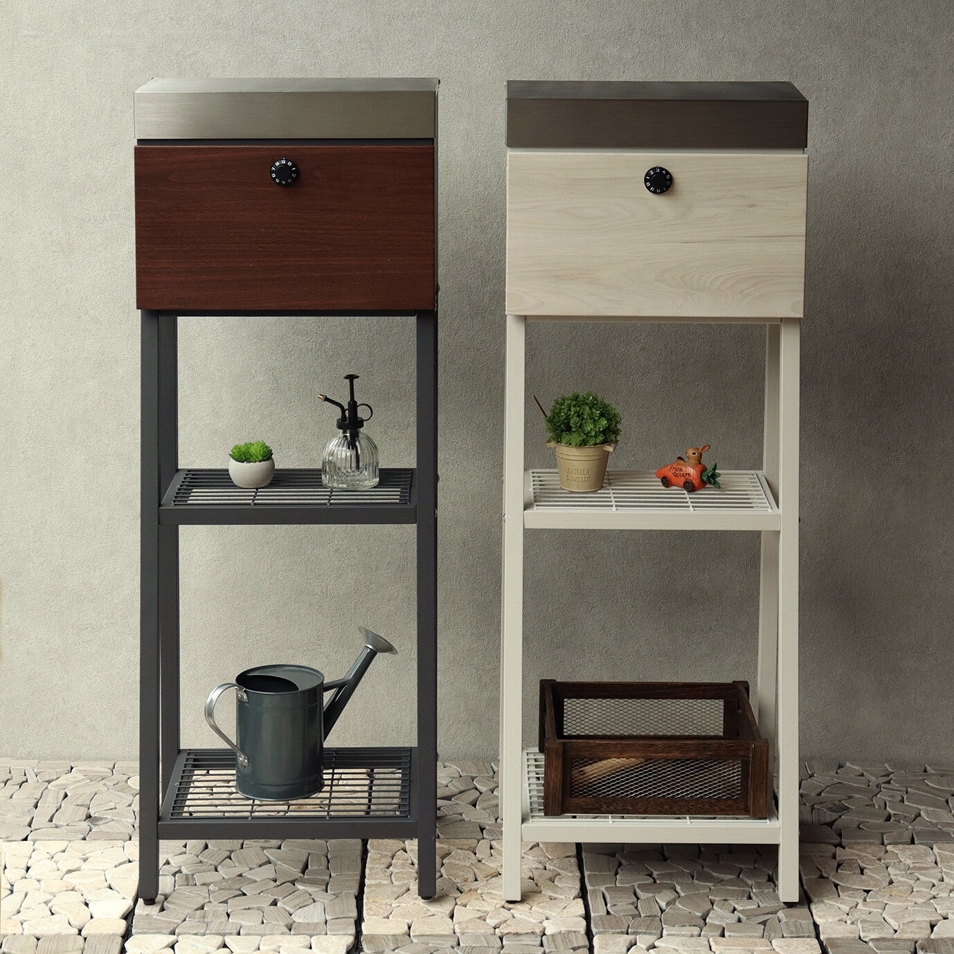 ◍脚部はアジャスター付で、アジャスターの高さ調整で、設置場所のがたつき防止の役目を果たします。棚板付きタイプで、小さな荷物であれば、棚板を置き配用としてご使用いただけます。棚板が2枚付きで、小物の装飾やガーデニングアイテムの収納として便利にご使用いただけます。