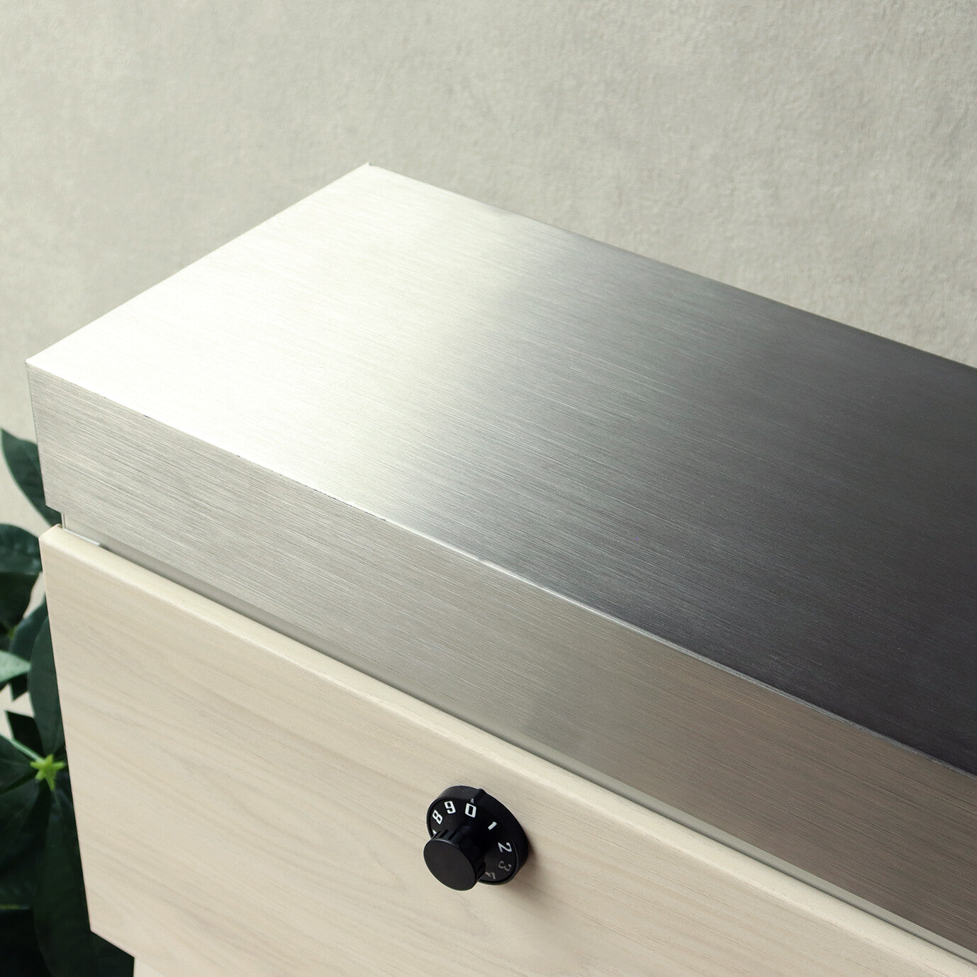 ◍郵便入れ本体の上蓋は、ステンレス素材で仕上げており、デザインのアクセントになっております。
