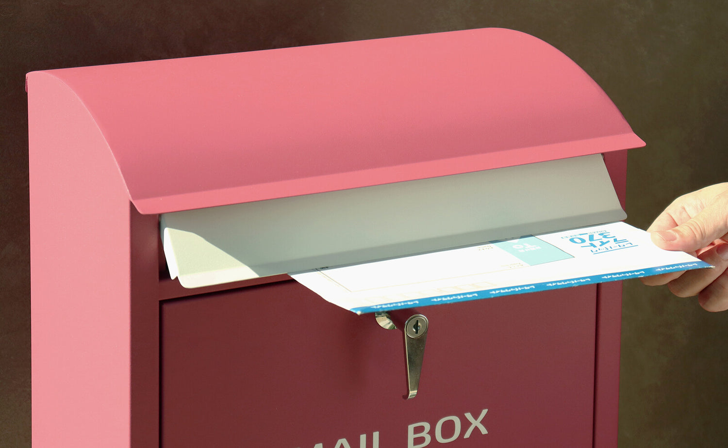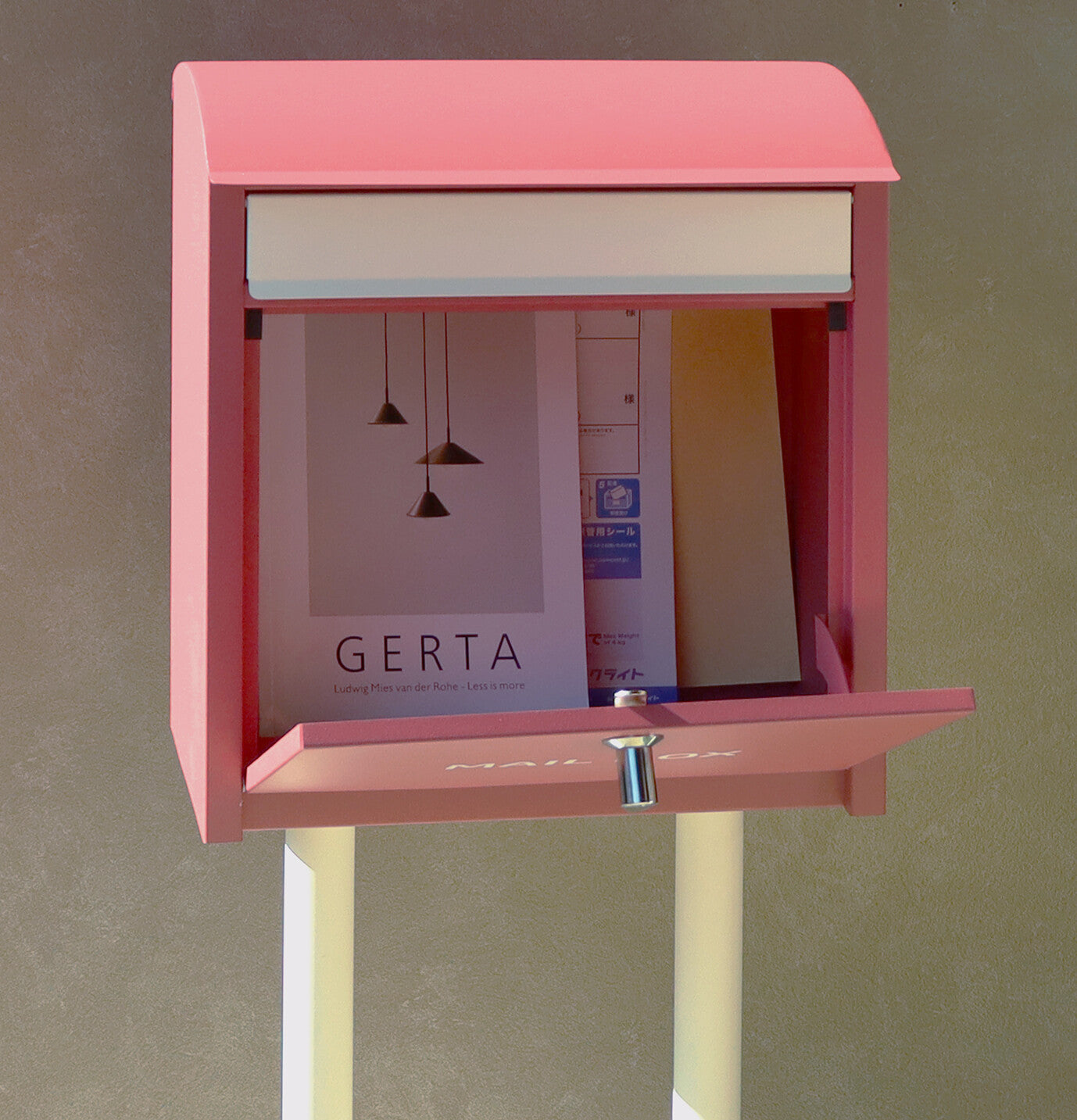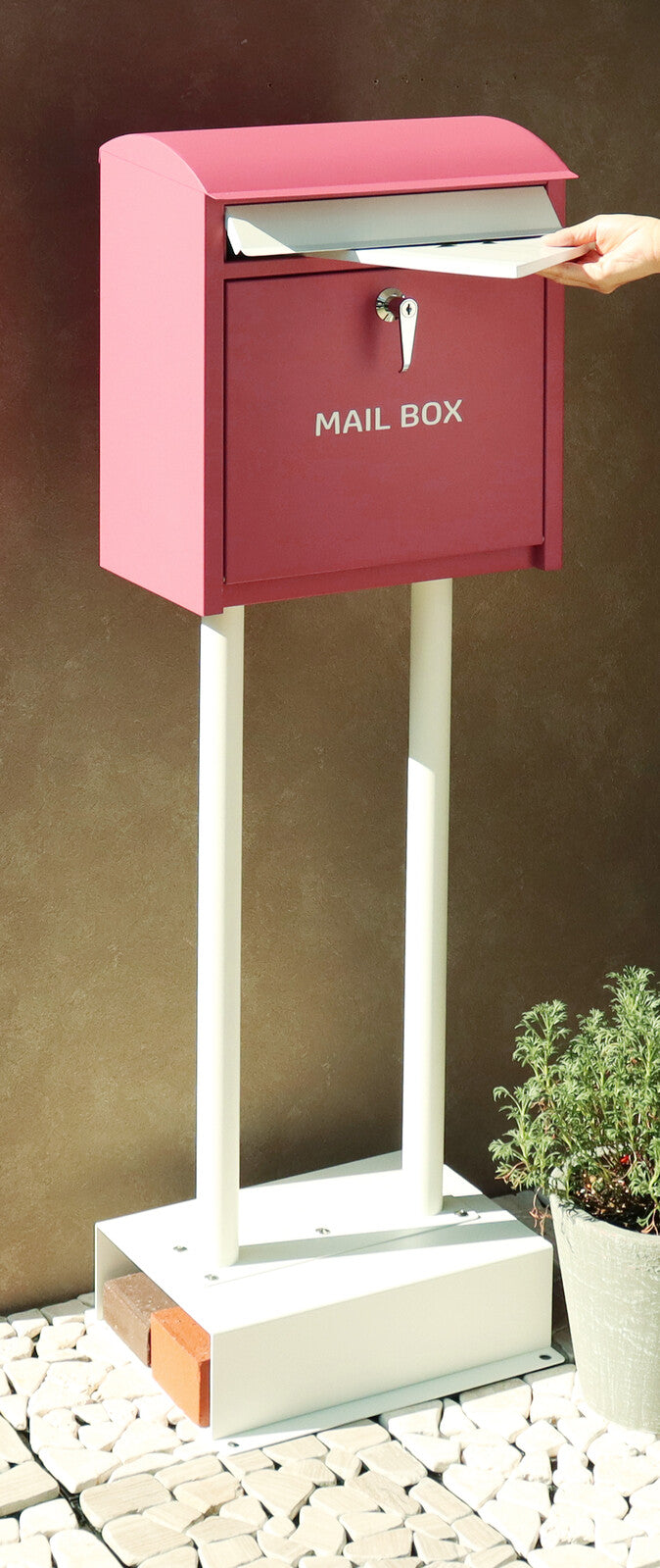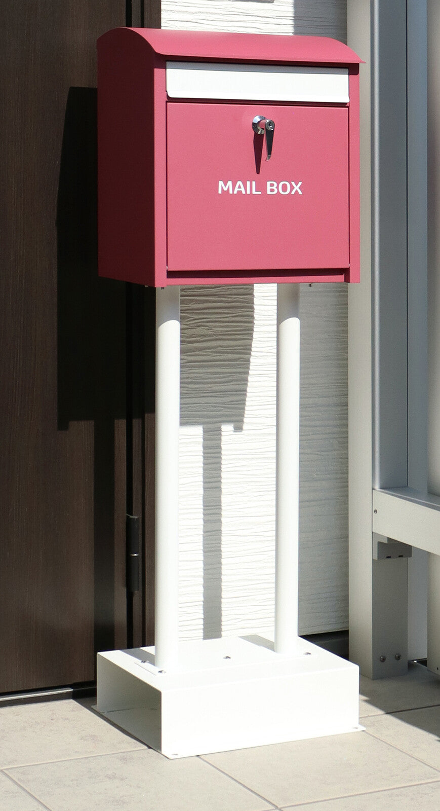 ◍カラーは上品な色合いのワインレッドとくすんだブルーのラベンダーブルーで、脚と台座部、郵便投函口はホワイトになります。