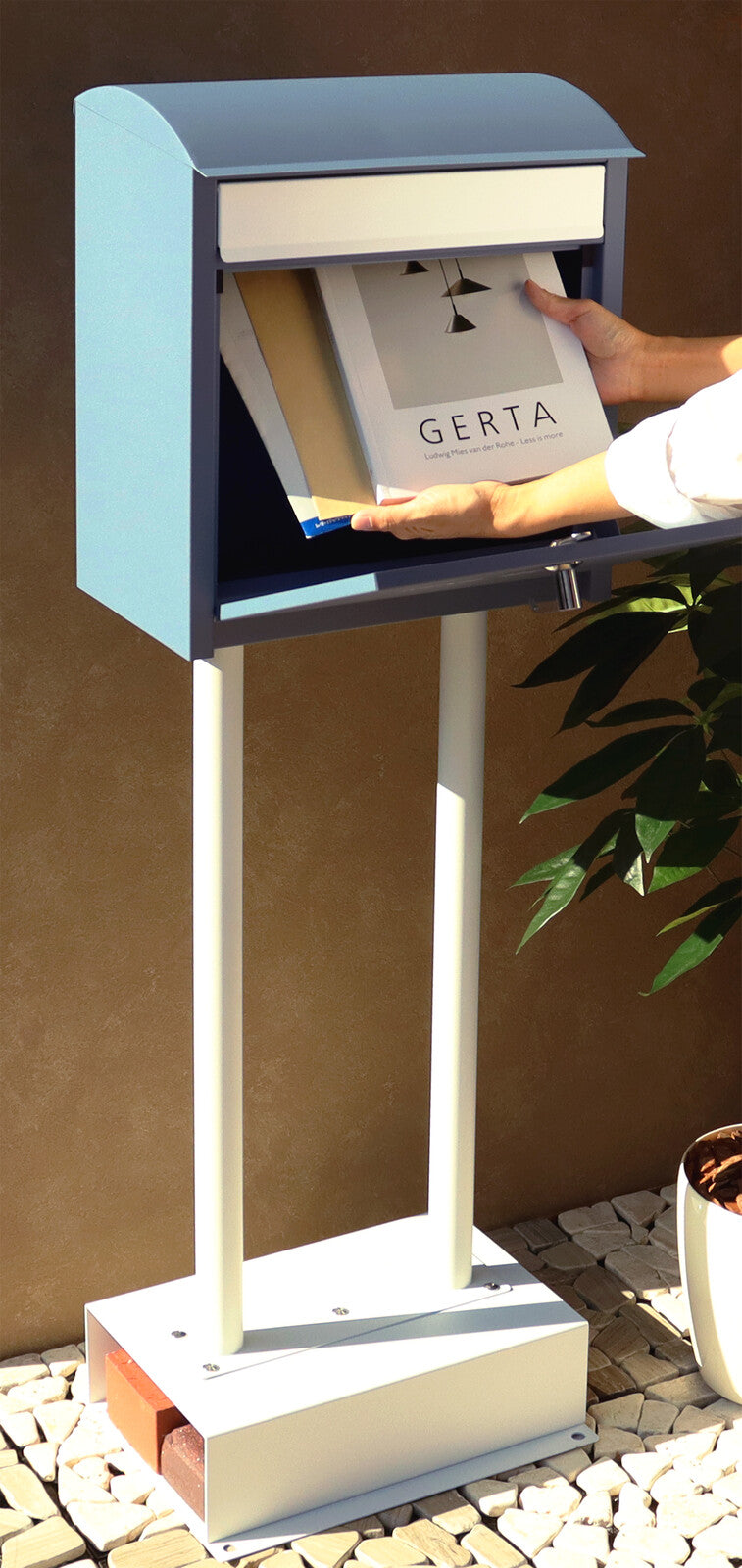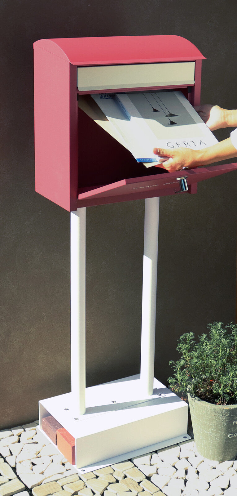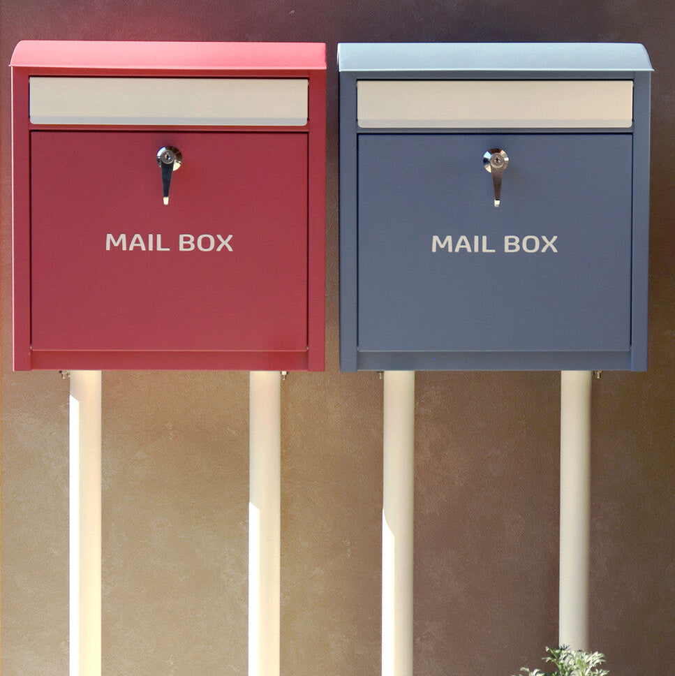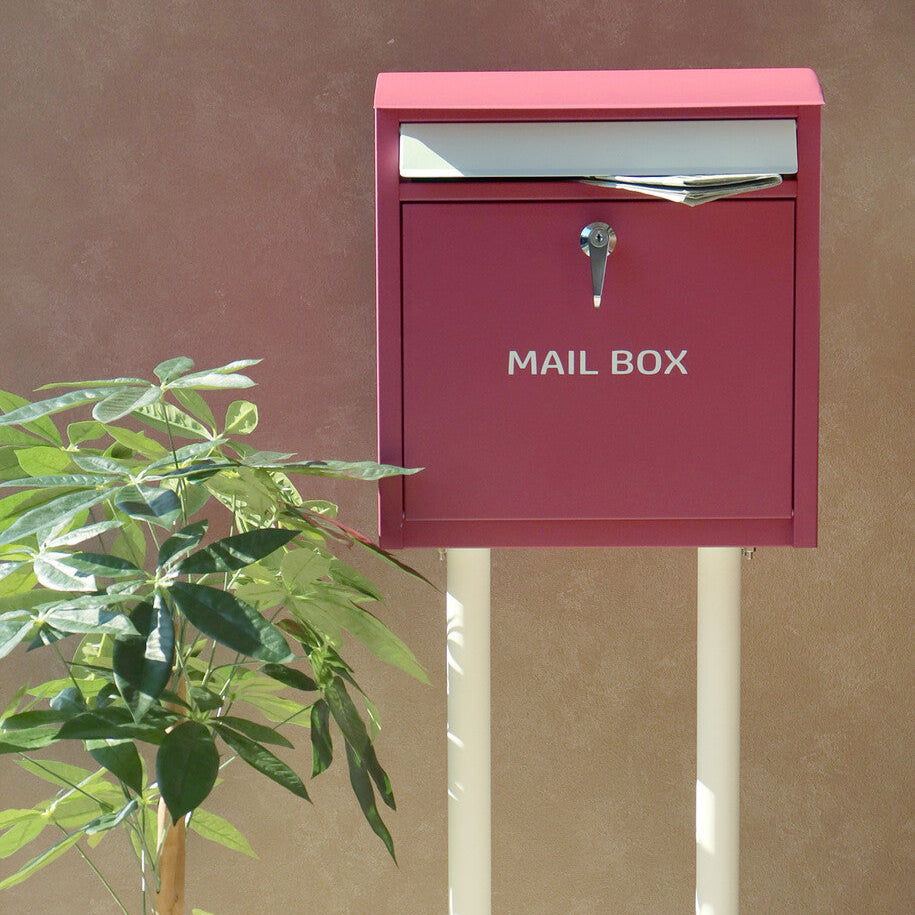 ◍カラーは上品な色合いのワインレッドとくすんだブルーのラベンダーブルーで、脚と台座部、郵便投函口はホワイトになります。