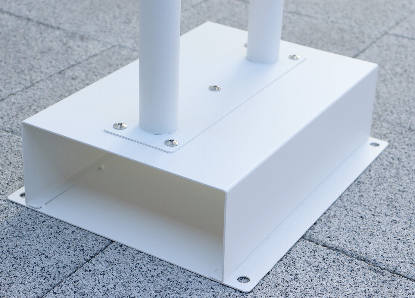 ◍地面固定用のアンカーボルトが付属します。土台部にアンカーボルトを打ち込む穴があり、地面とポストを固定することも可能です。
