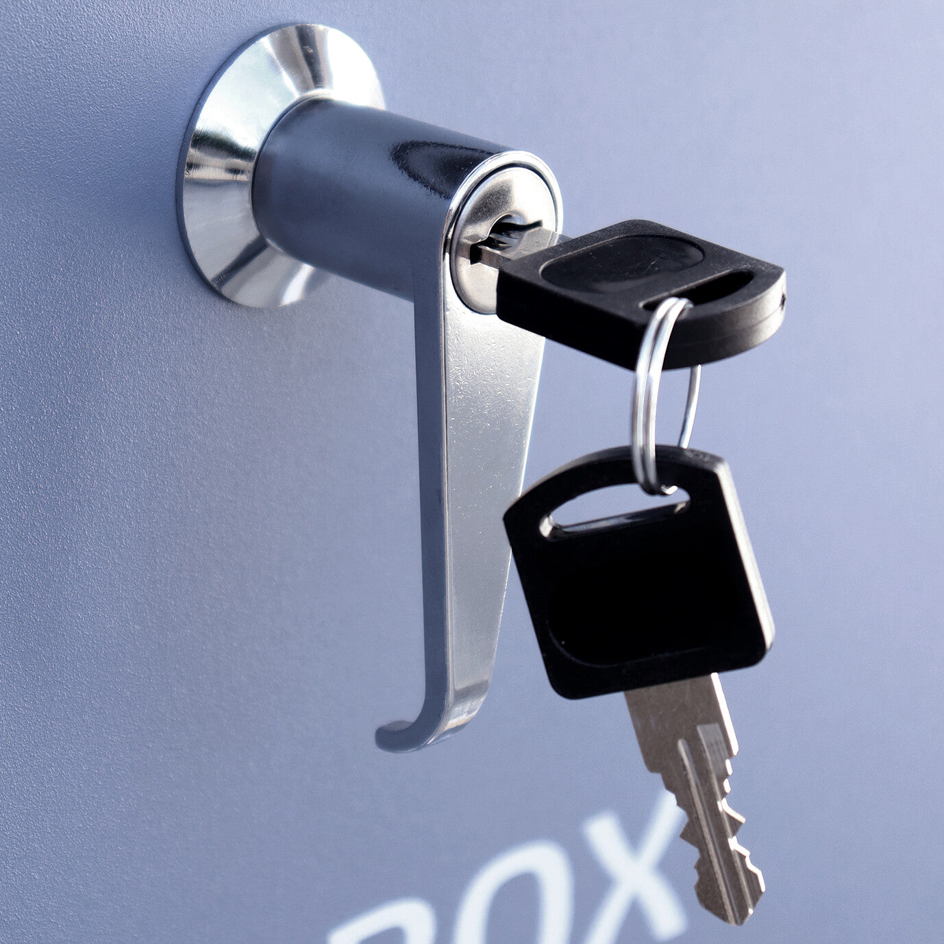 ◍鍵付きなので防犯面に安心です。また、スペアキーが1本付属しています。郵便取出口は、扉が最大約75°くらいまでにしか開かない構造ですので、郵便物取り出し時に、郵便物の落下の心配がありません。