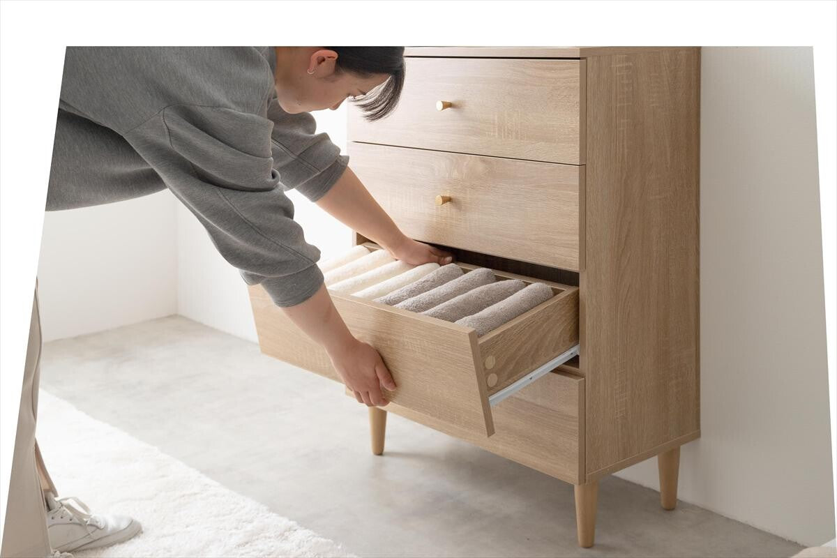◍ワイドな引き出しは4段に分かれており、段毎に整理しながらこの1台にたっぷり収納していただけます。