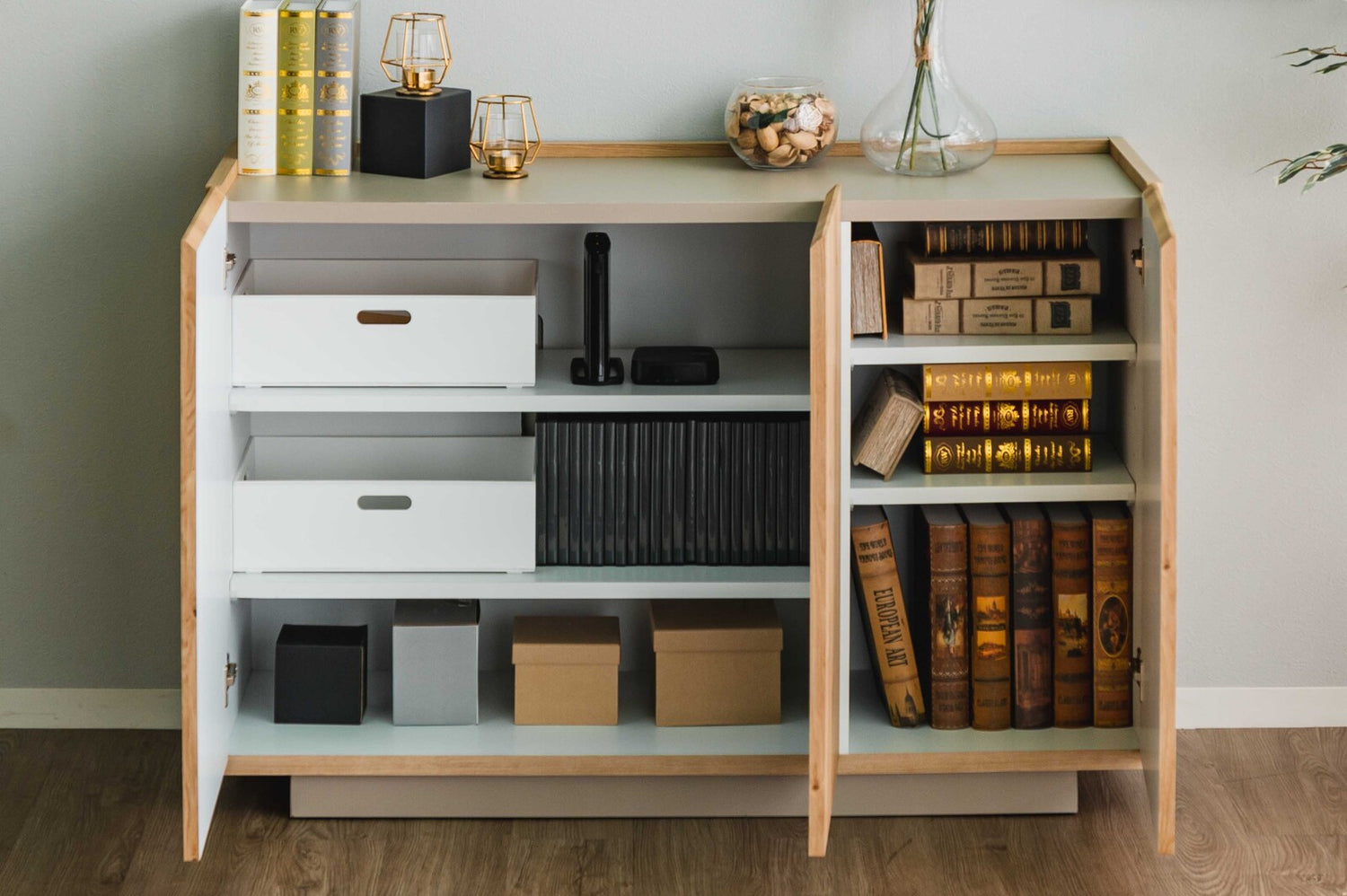 ●150サイズ:可動棚大2枚、小4枚 配線コード穴あり
