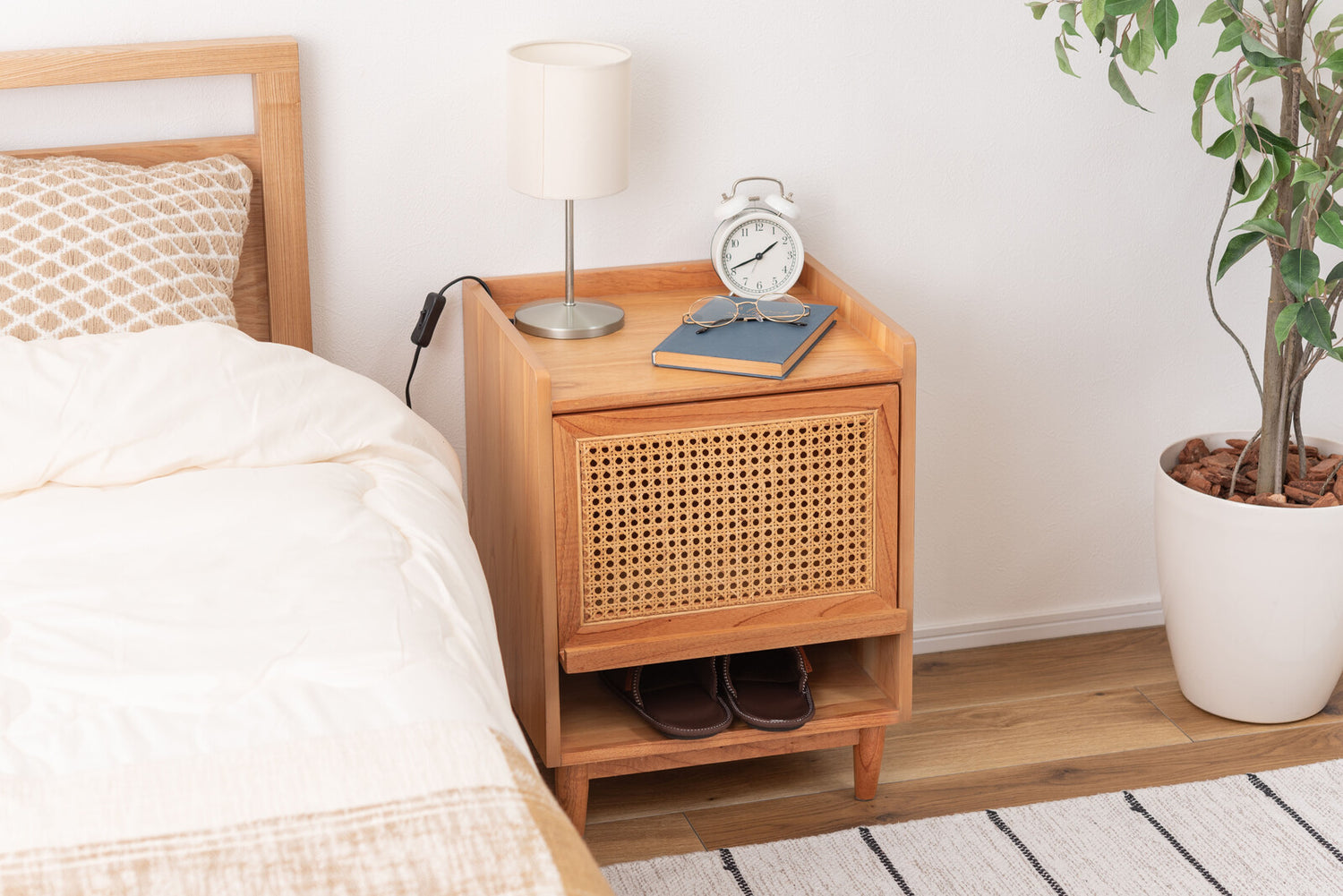 ◍使いやすさとデザイン性に着目したシンプルなナイトテーブル。