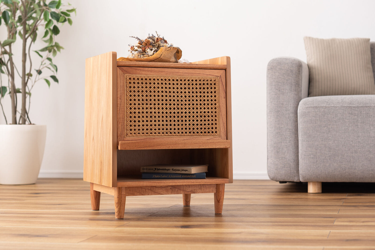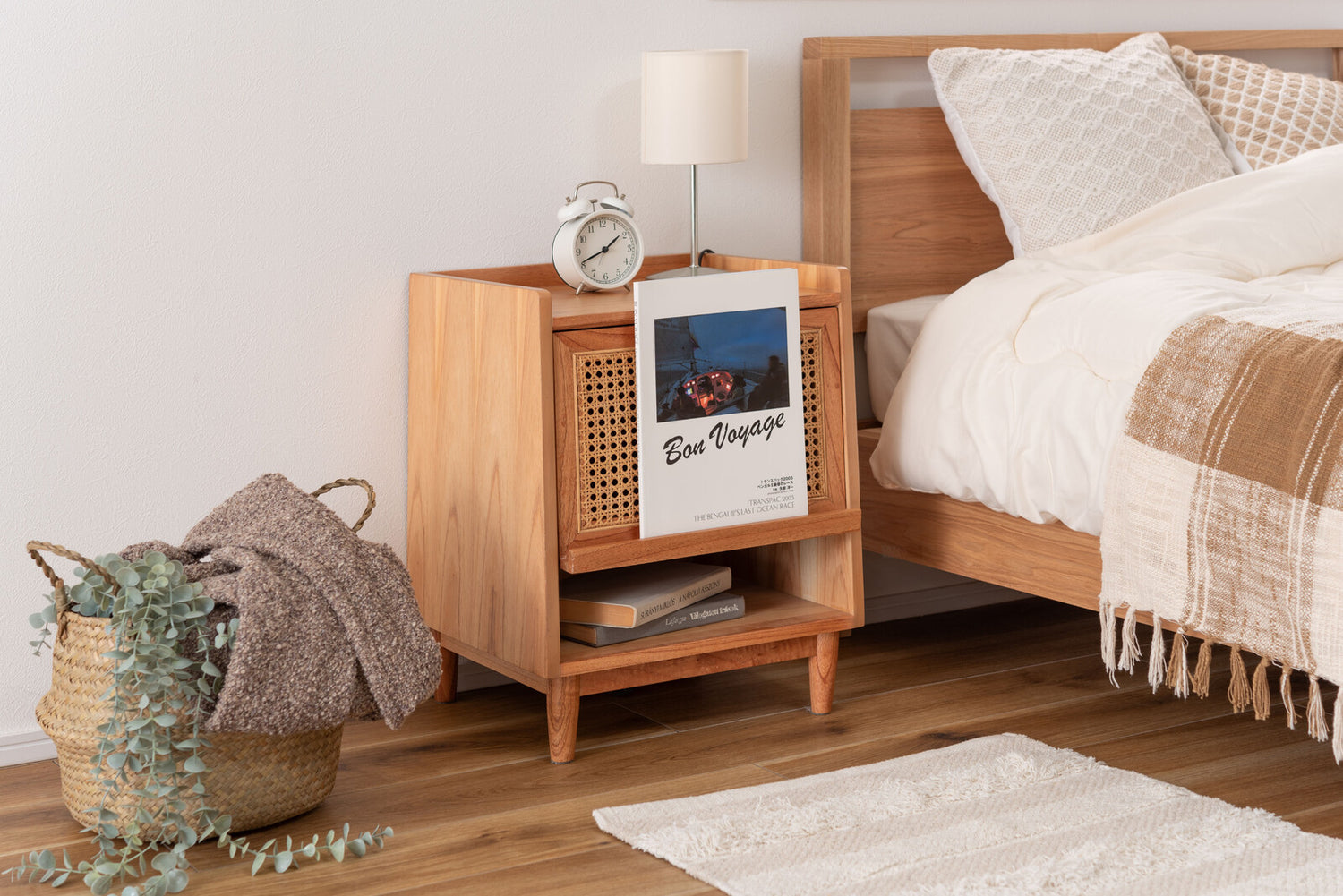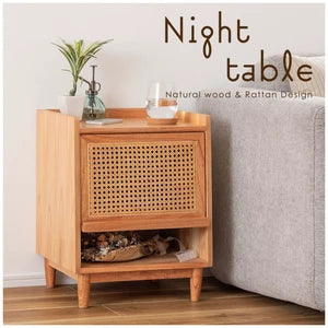 サイドテーブル テーブル 棚付き 棚板 ラタン ソファ ベッドサイドテーブル 木製 北欧