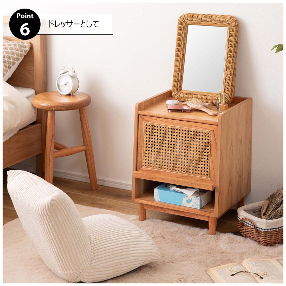 ◍ナイトテーブルとしてだけでなく、サイドテーブルやドレッサーとしてもおすすめ。