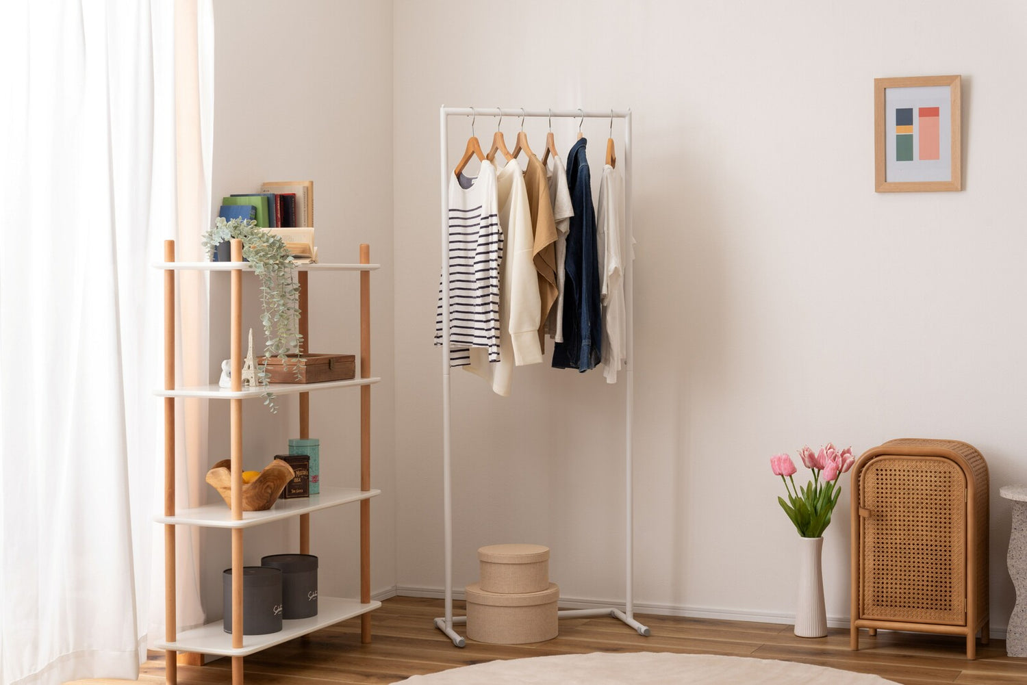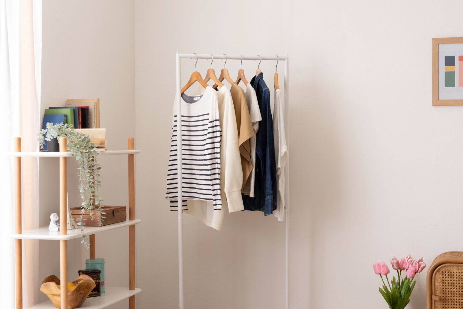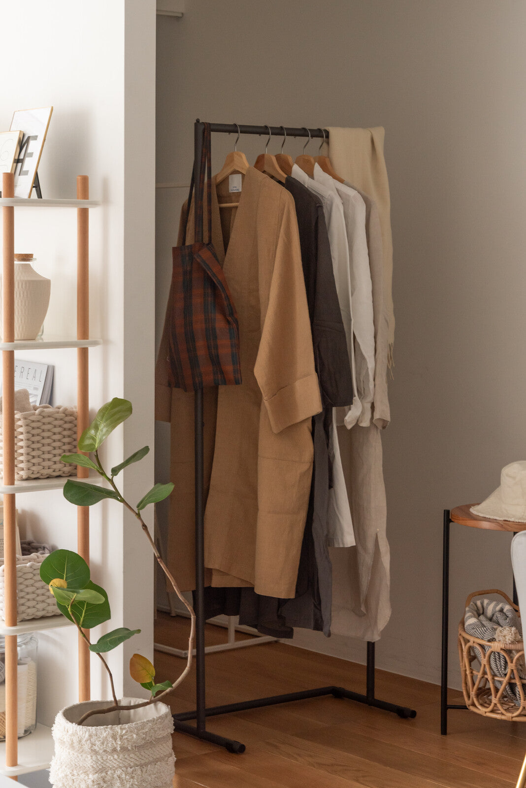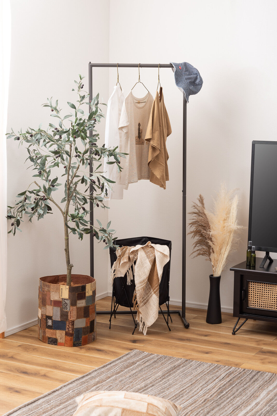 ● お部屋の雰囲気を選ばず、シャープでスッキリとしたデザインは、掛けられた洋服を品よく見せてくれます。