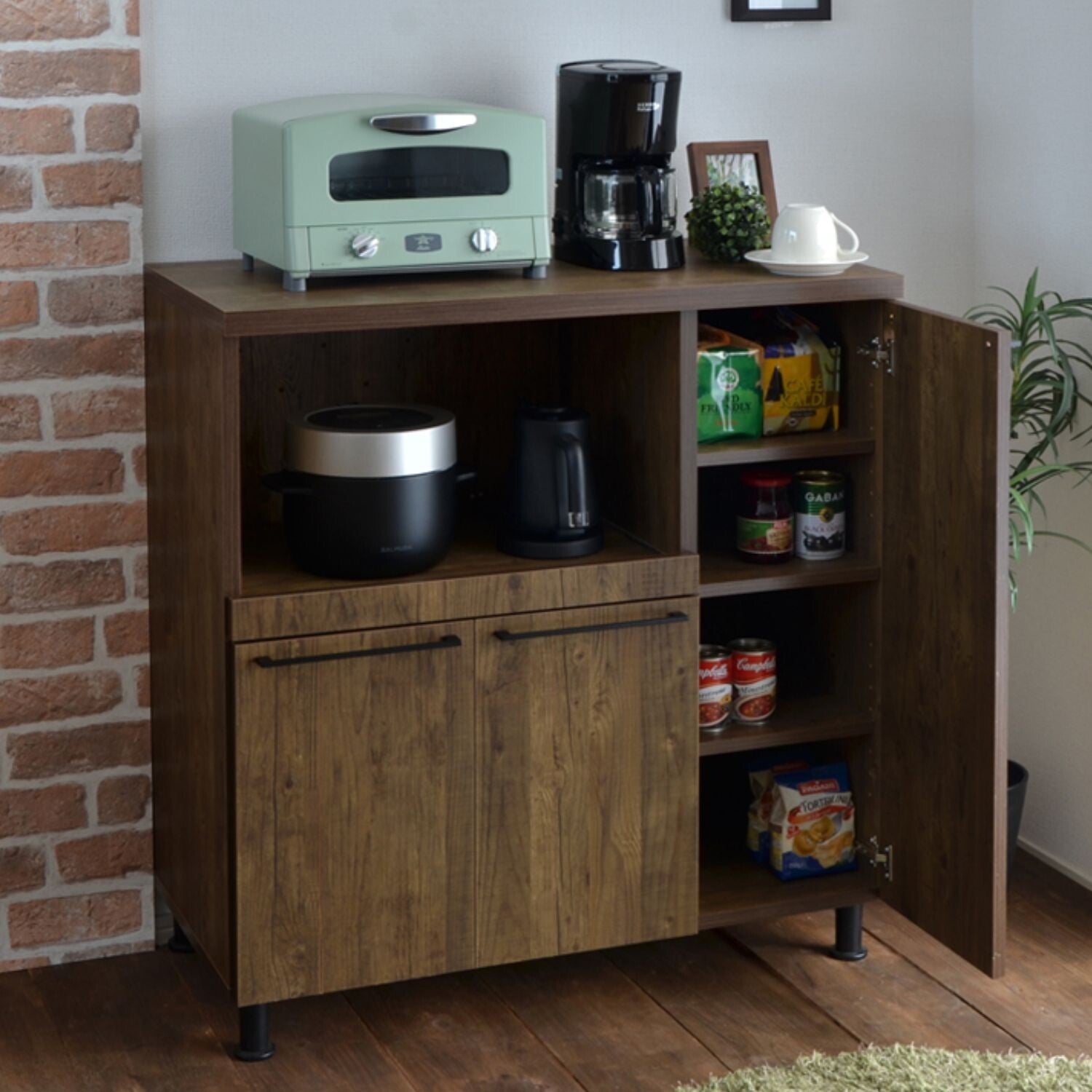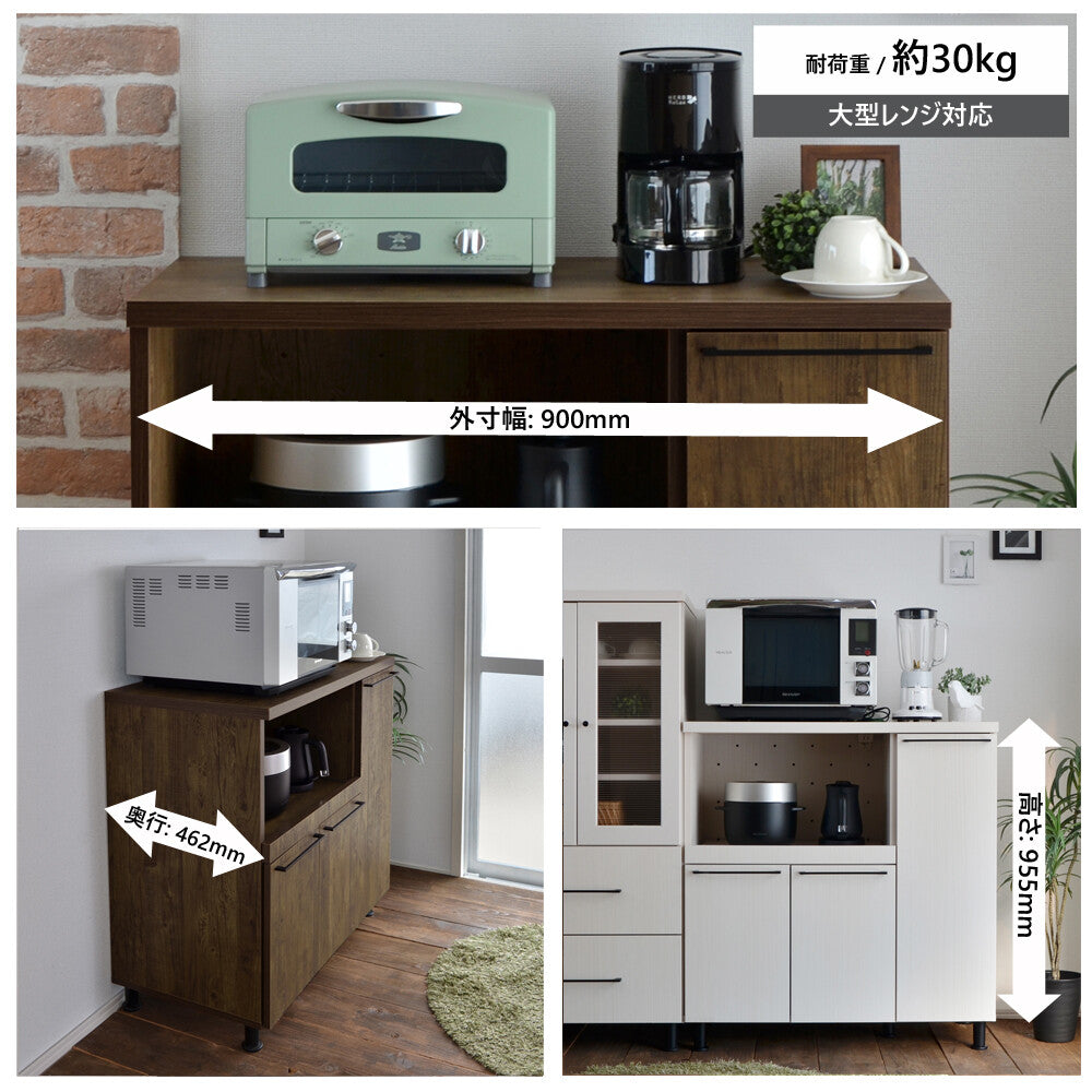 【日本製】 キッチンカウンター レンジ台 幅90cm ブルックリンスタイル