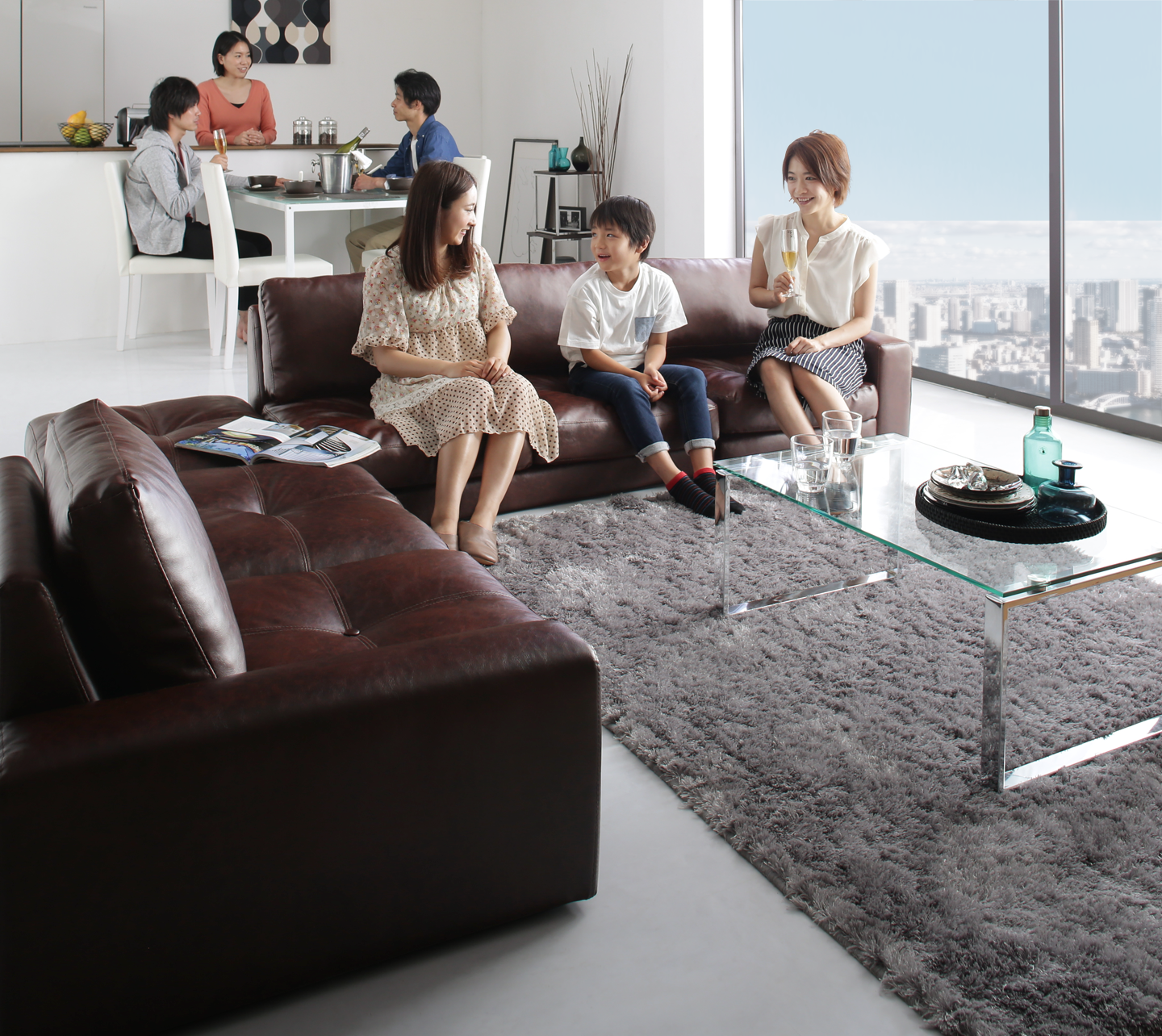 みんなが集う贅沢空間…オットマンをコーナーに配置することで、リビングを囲めるカタチに。大切な人や家族と近い距離でくつろぐことができます。
