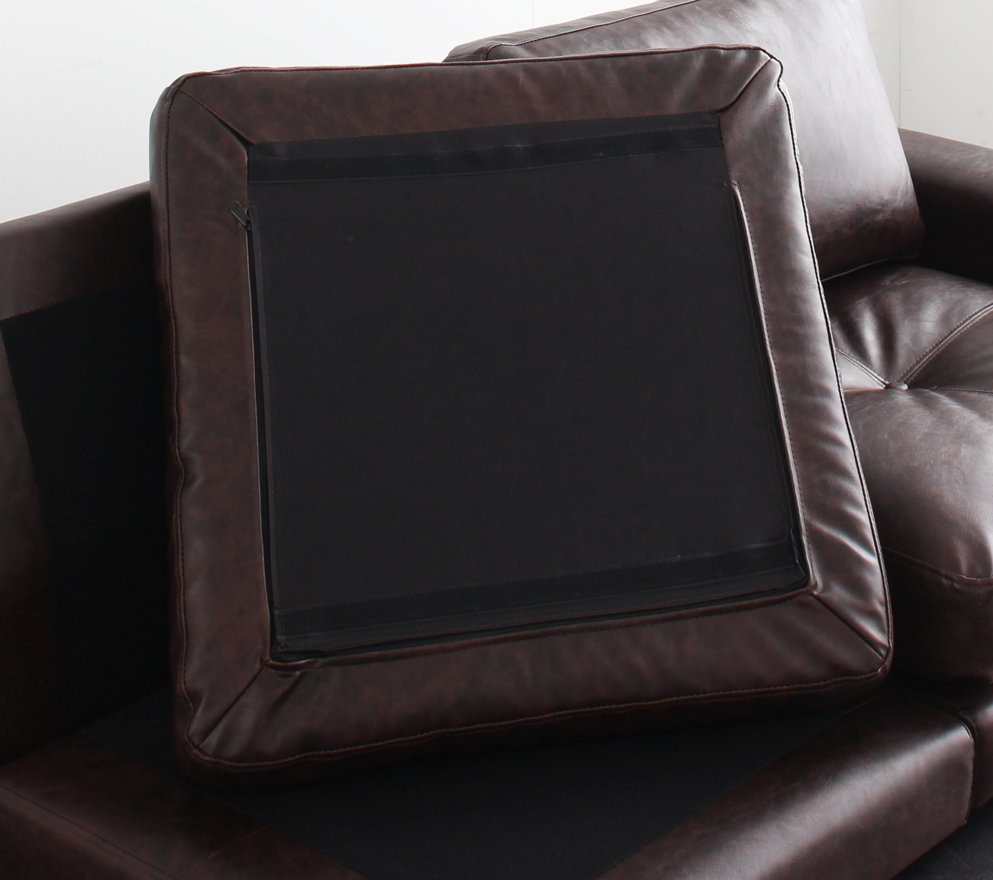 座・背クッションともに、裏面には固定テープがついているので、本体からズレないようになっています。