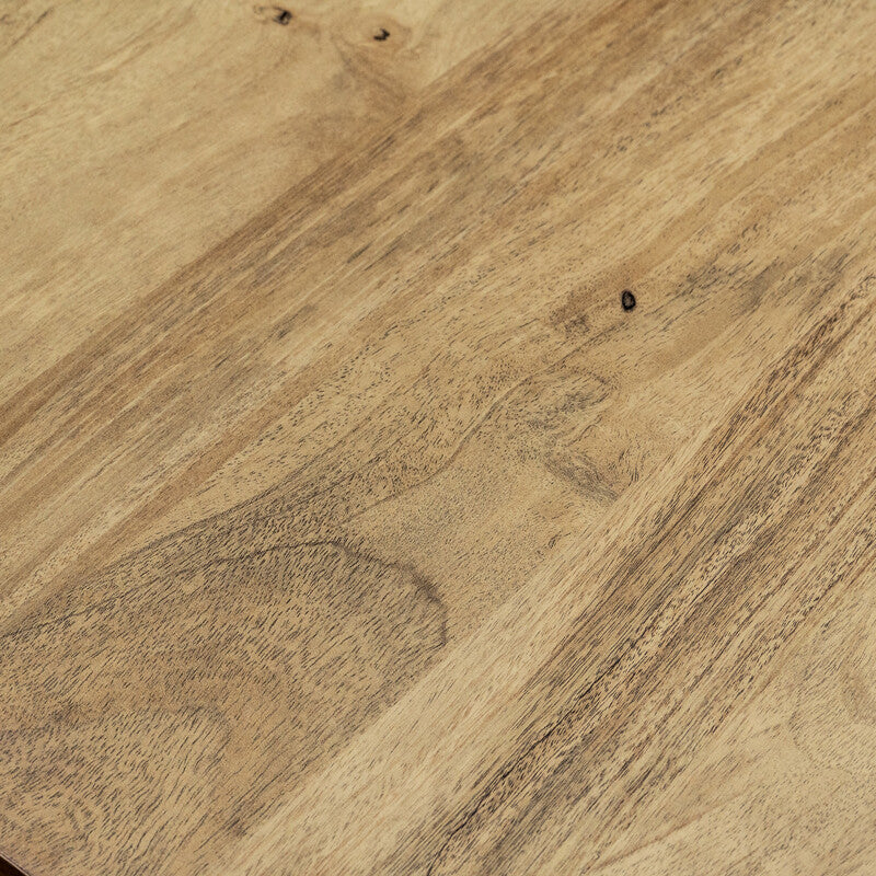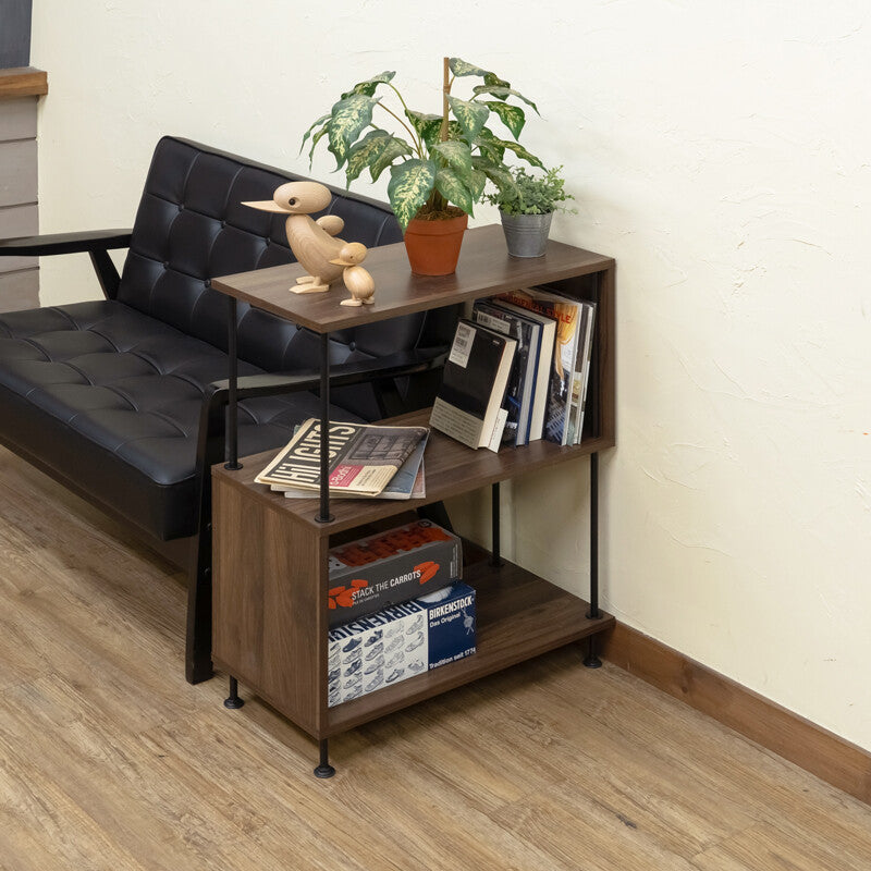 ◍スリムなスチールフレームとヴィンテージテイストの木目柄天板を組み合わせた