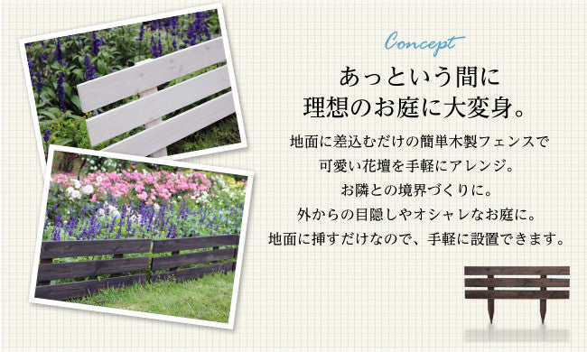 🌟地面に差込むだけの簡単木製フェンスで可愛い花壇を手軽にアレンジ。