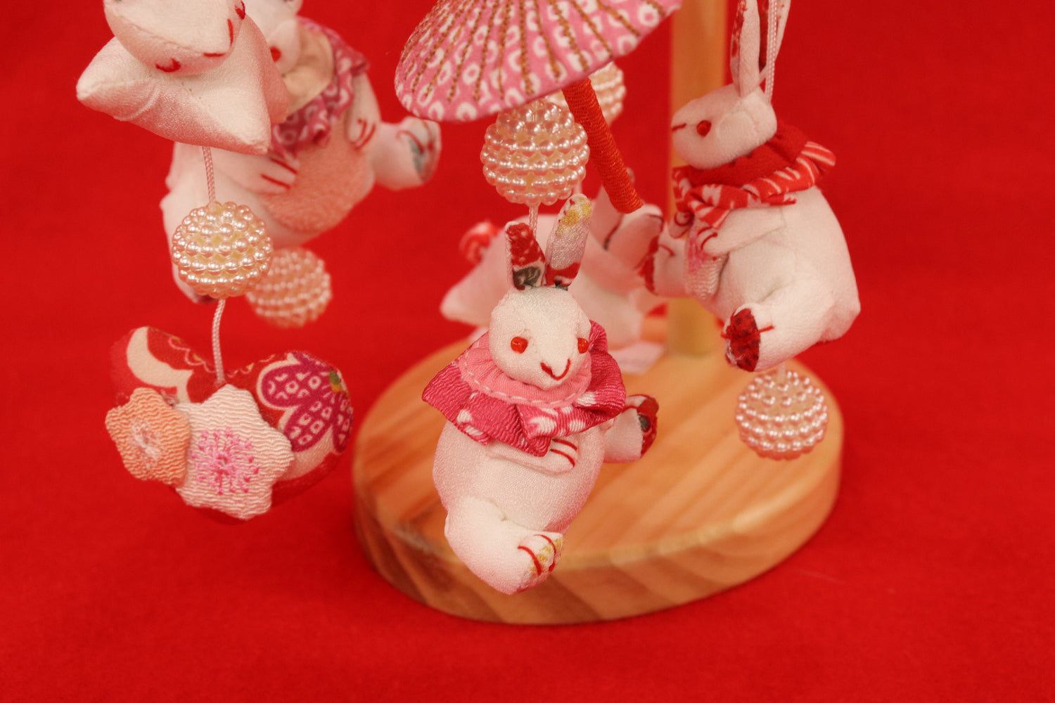 吊るし飾り ミニうさぎの子 赤 高さ33㎝