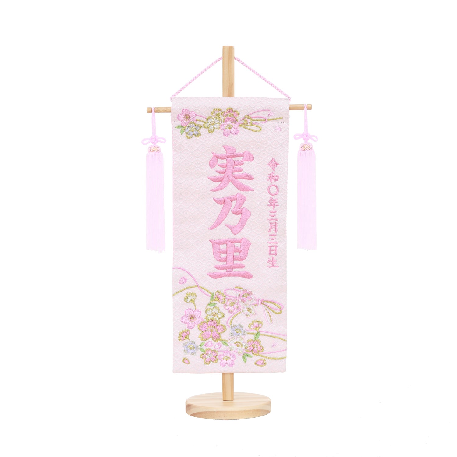 名前旗 刺繍ピンクリボン 生年月日付き 高さ39㎝