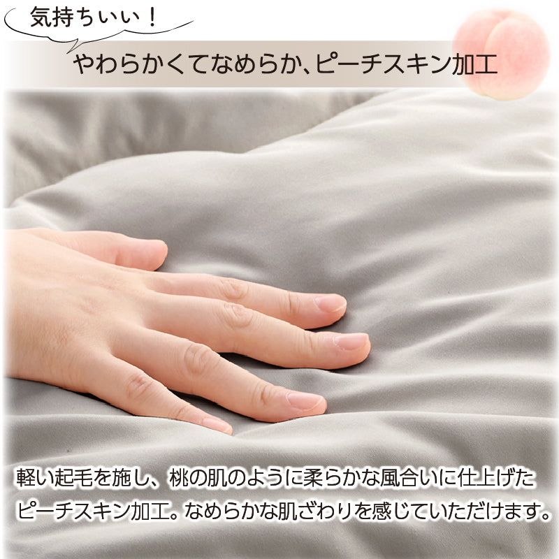 軽い起毛を施し、桃の肌のように柔らかな風合いに仕上げたピーチスキン加工。なめらかな肌ざわりを感じていただけます。