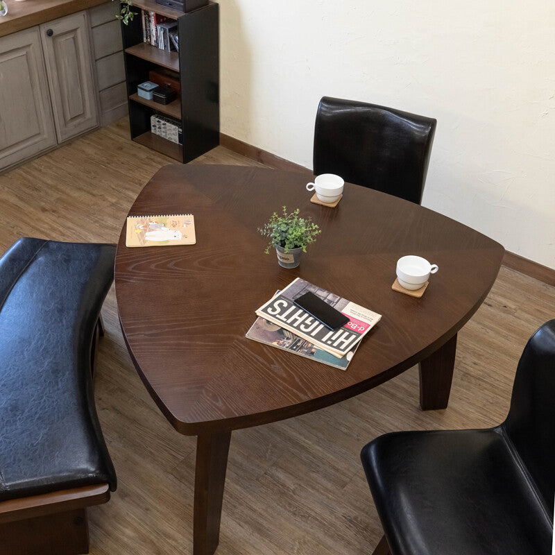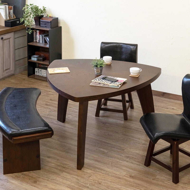 ◍3辺が膨らんで丸みを帯びた優しい風合いのダイニングテーブルです。