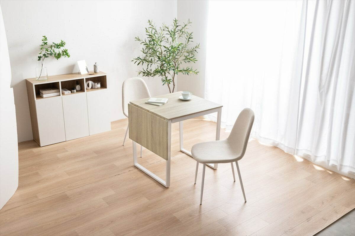 ◍お部屋を広く使いたい時はコンパクトに、来客時やゆったりと食事をしたい時にはワイドに広げるなど、好きな時に天板サイズの調整ができ、使い方が広がります。