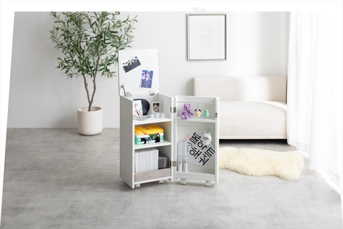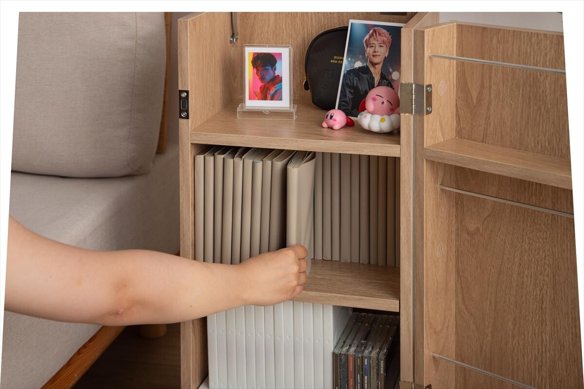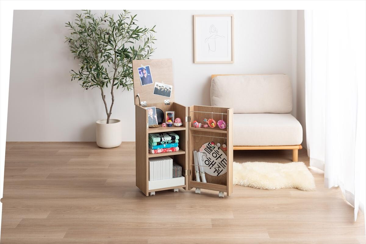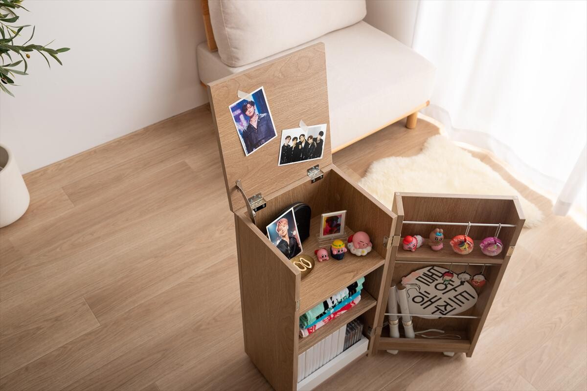 ◍シンプルでコンパクトな見た目ながらも、推し活用に設計された収納スペースでしっかり飾れてたっぷり収納が可能。