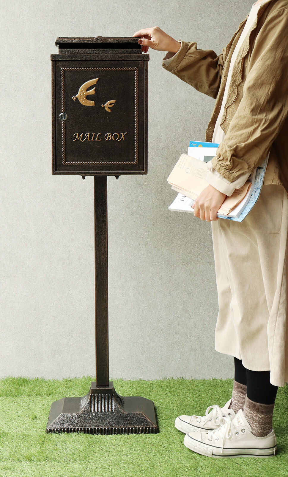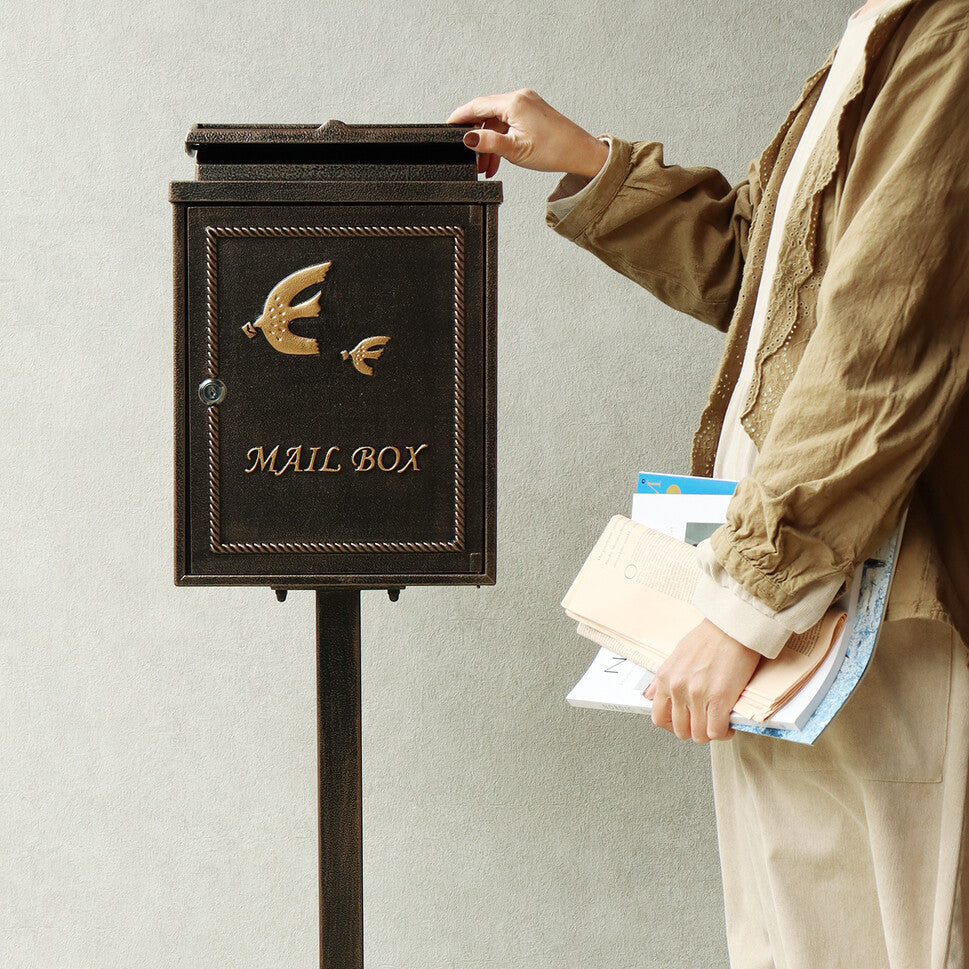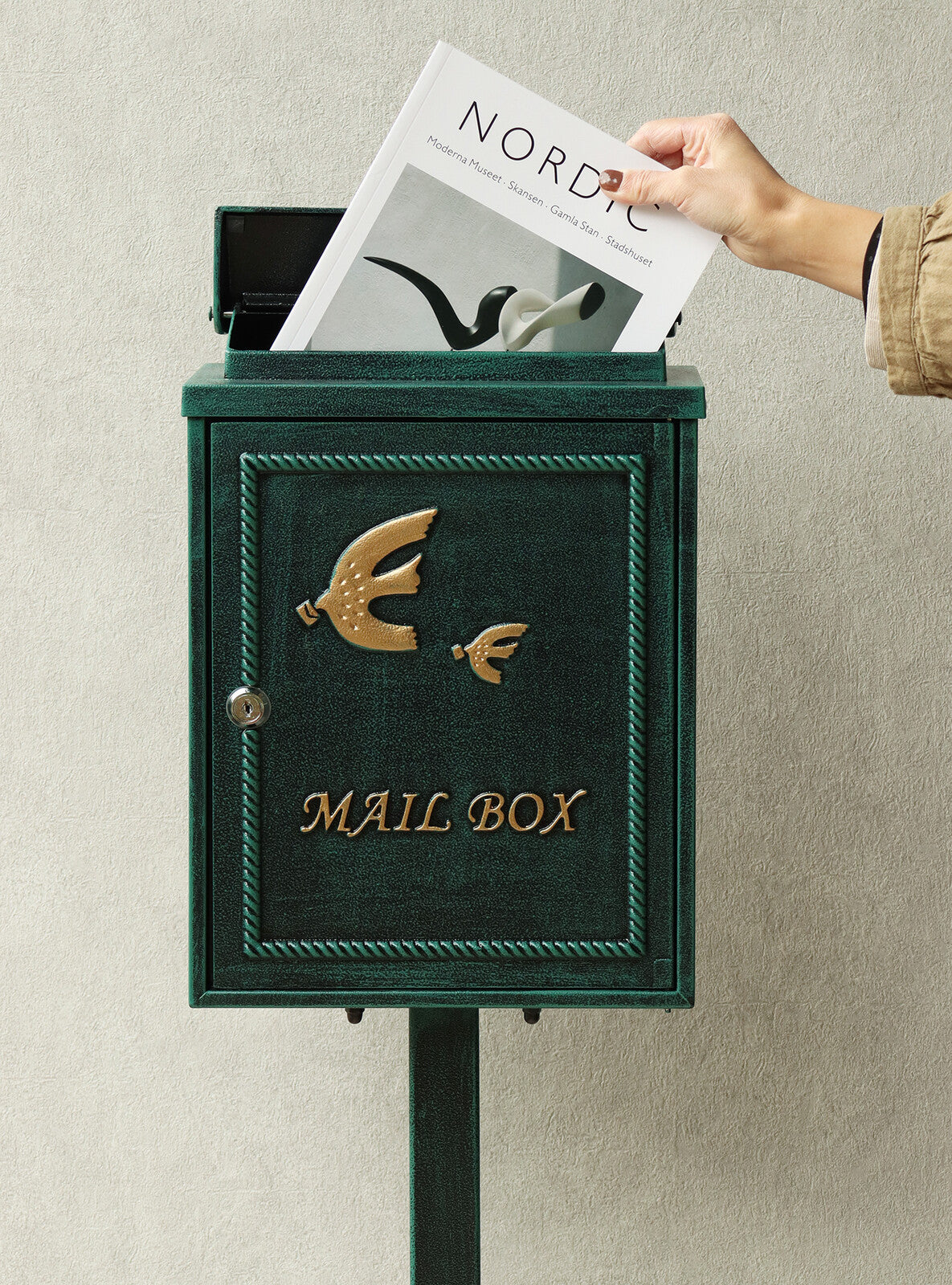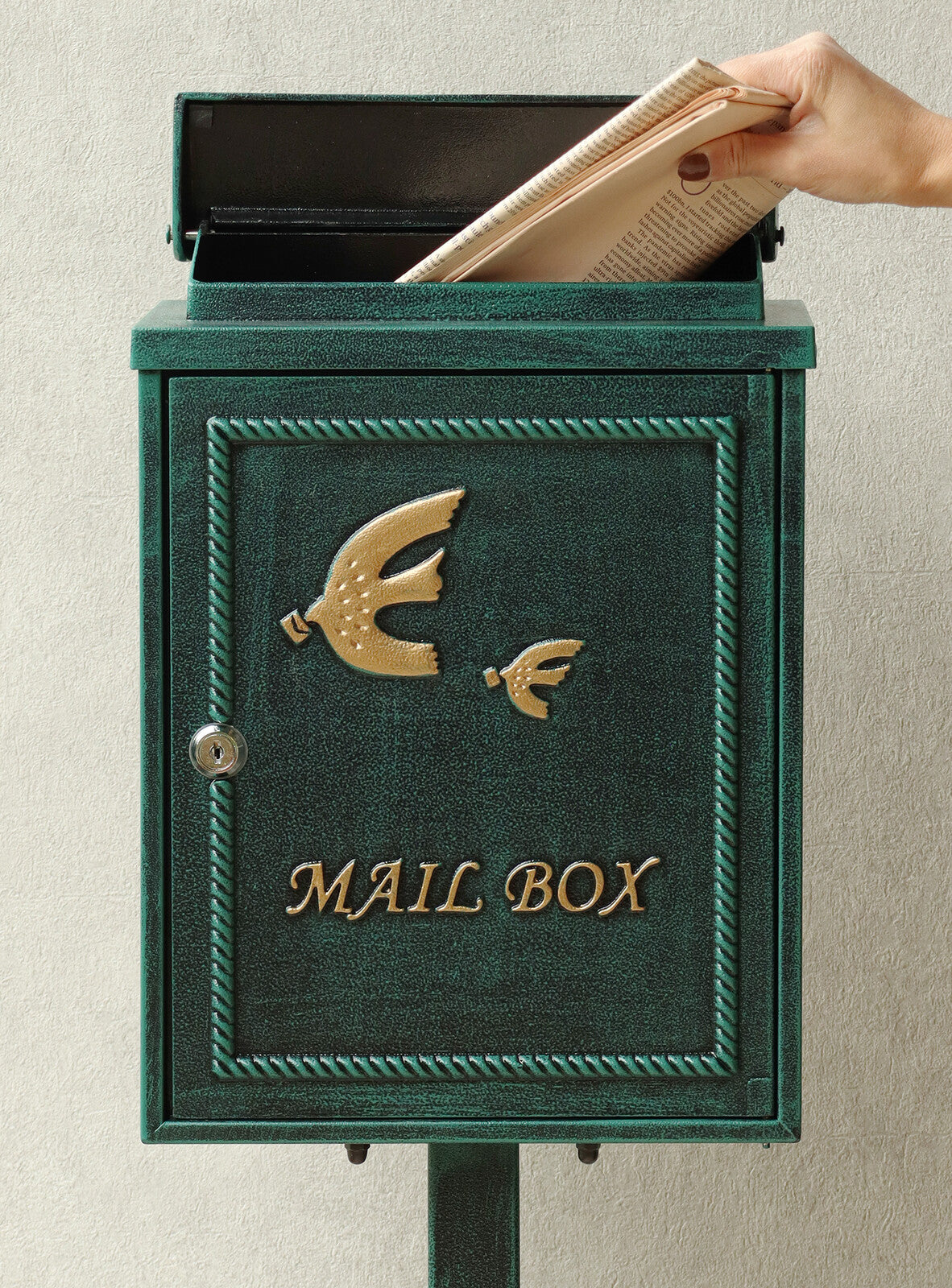 ◍郵便物を運ぶ小鳥の型と、"MAIL BOX"の型がデザインにアクセントを加えております。