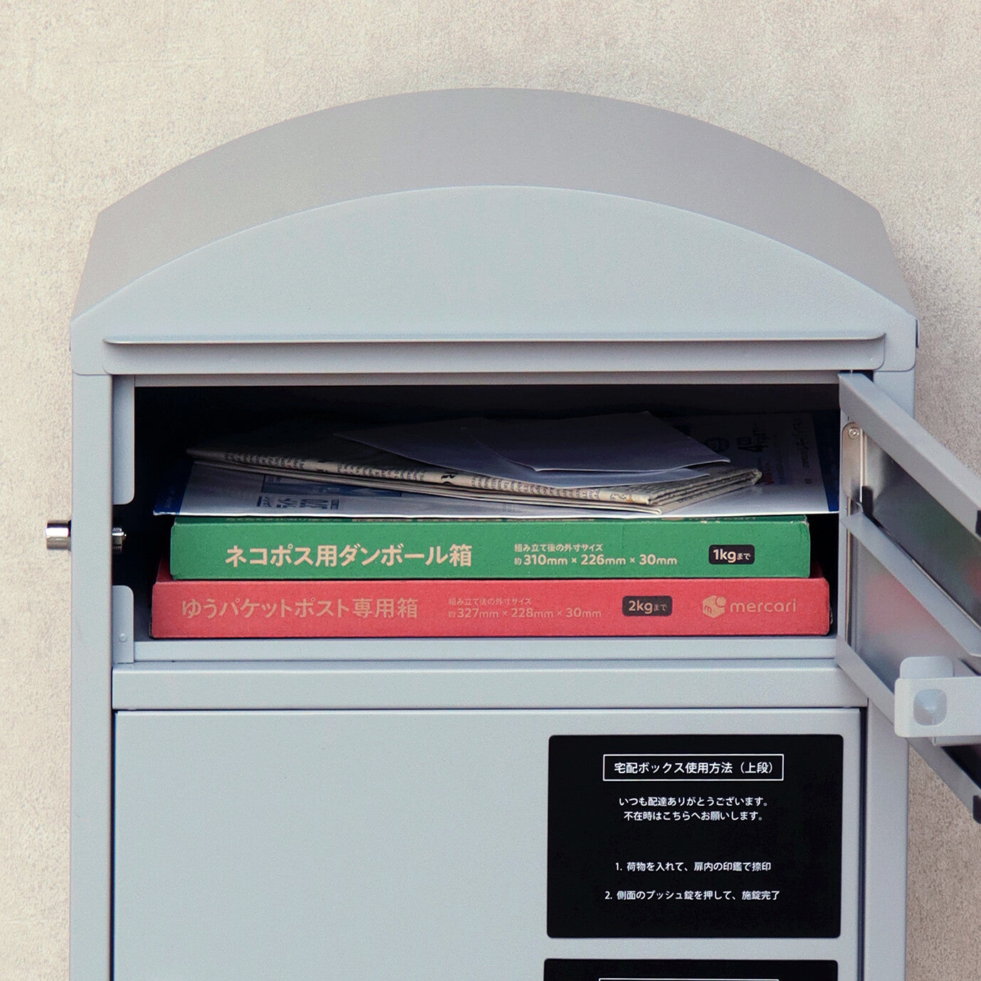 上段、下段ともに側面にスリット窓付きで、扉を開けなくても荷物の確認が可能です。大きな郵便物も投函可能:上段の郵便投函口は、ゆうパケットポストや、ネコポスが投函可能です。
