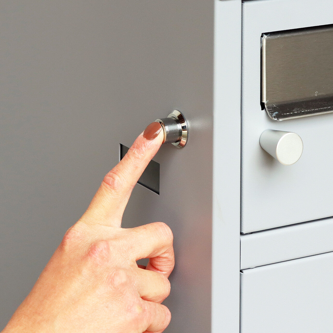 上段は、プッシュキーで簡単に鍵の開閉が可能で、防犯面にも安心です。また、スペアキーが1本付属しております。