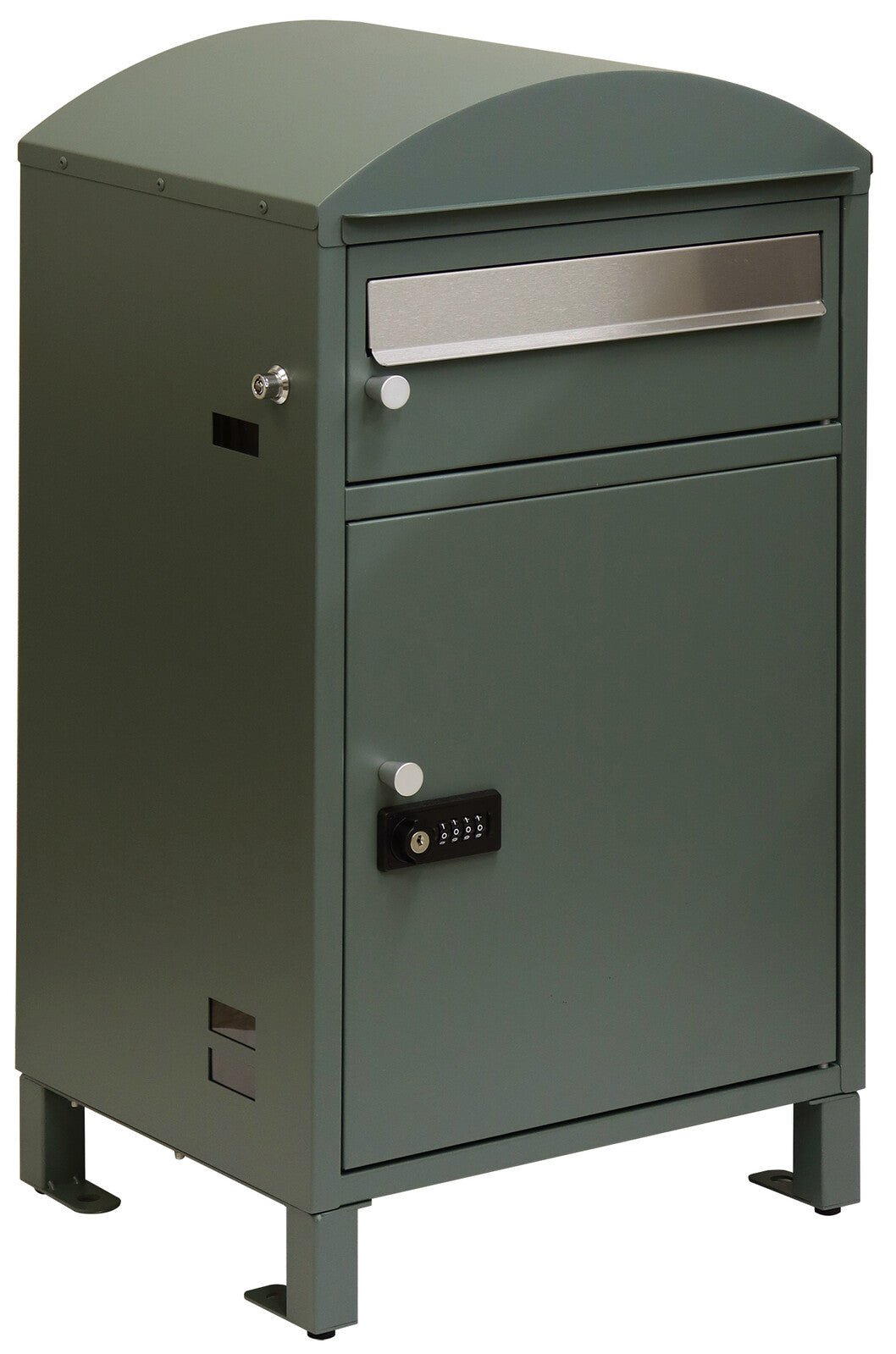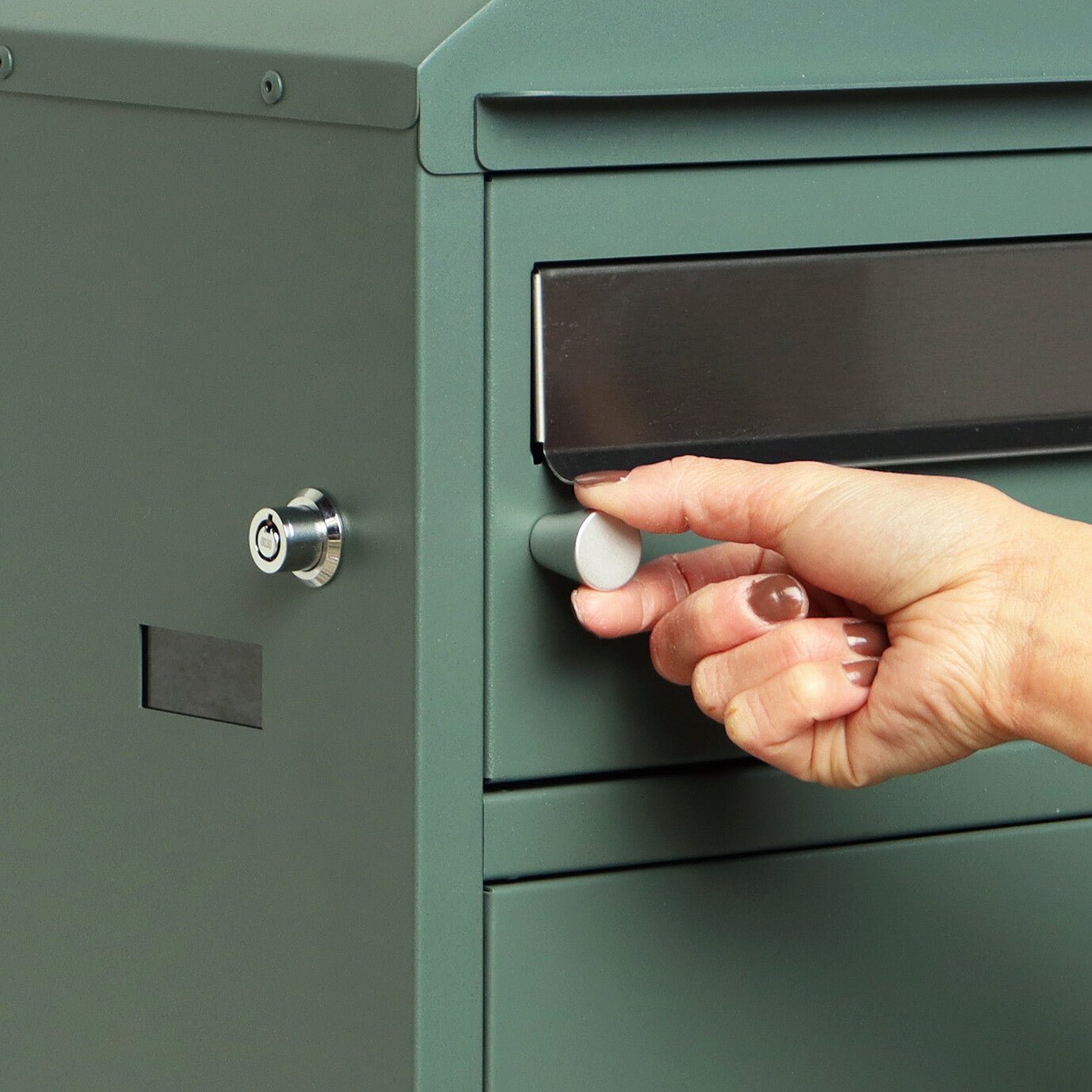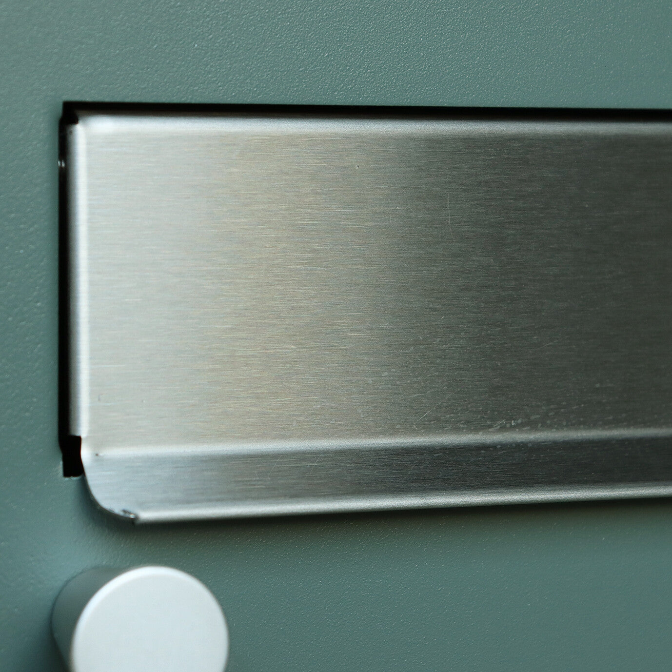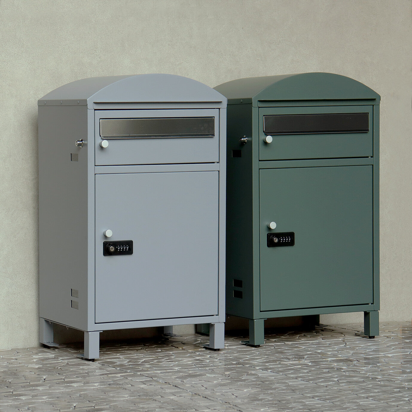 カラーは、明るいグレーのクールグレーと、落ち着いた緑のフォレストグリーンの2色展開になります。投函口部はステンレス素材を使用したデザインになります。