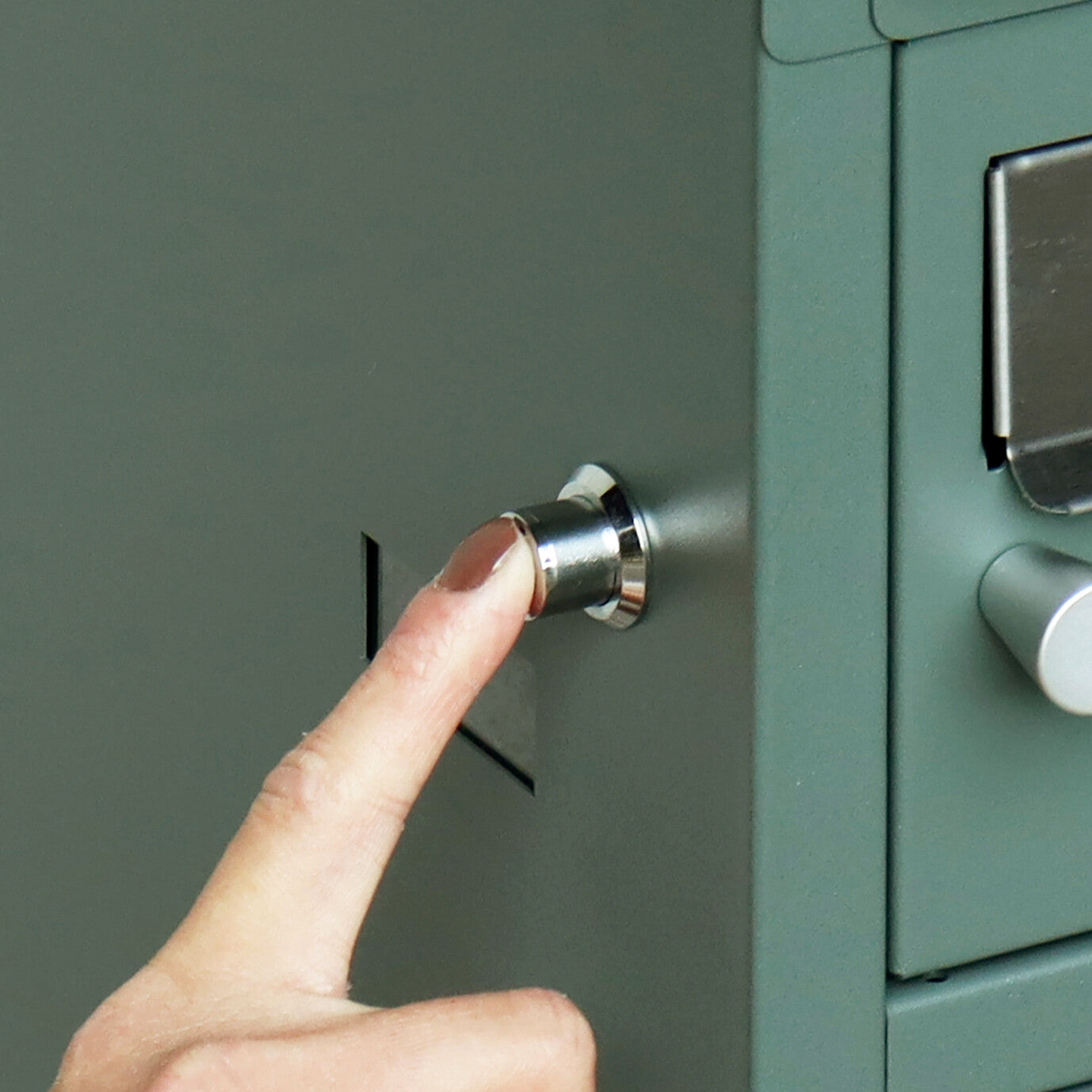下段は、ダイヤルロックとシリンダー錠(ダイヤル解錠番号が分からなくなった際の緊急用)でドアの開閉が可能です。下段のダイヤルロックは、鍵を施錠した際、鍵を解錠した際にダイヤル番号が"0000"にリセットされ、設定したダイヤル番号の漏洩の心配がありません。