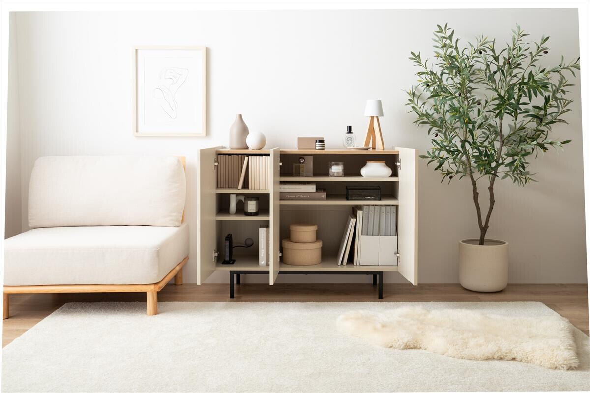 ◍大容量収納と背面のコード穴で、ごちゃつきやすい小物類からA4サイズの書類、ルーターのコード類まで、すっきりまとめて収納可能です。