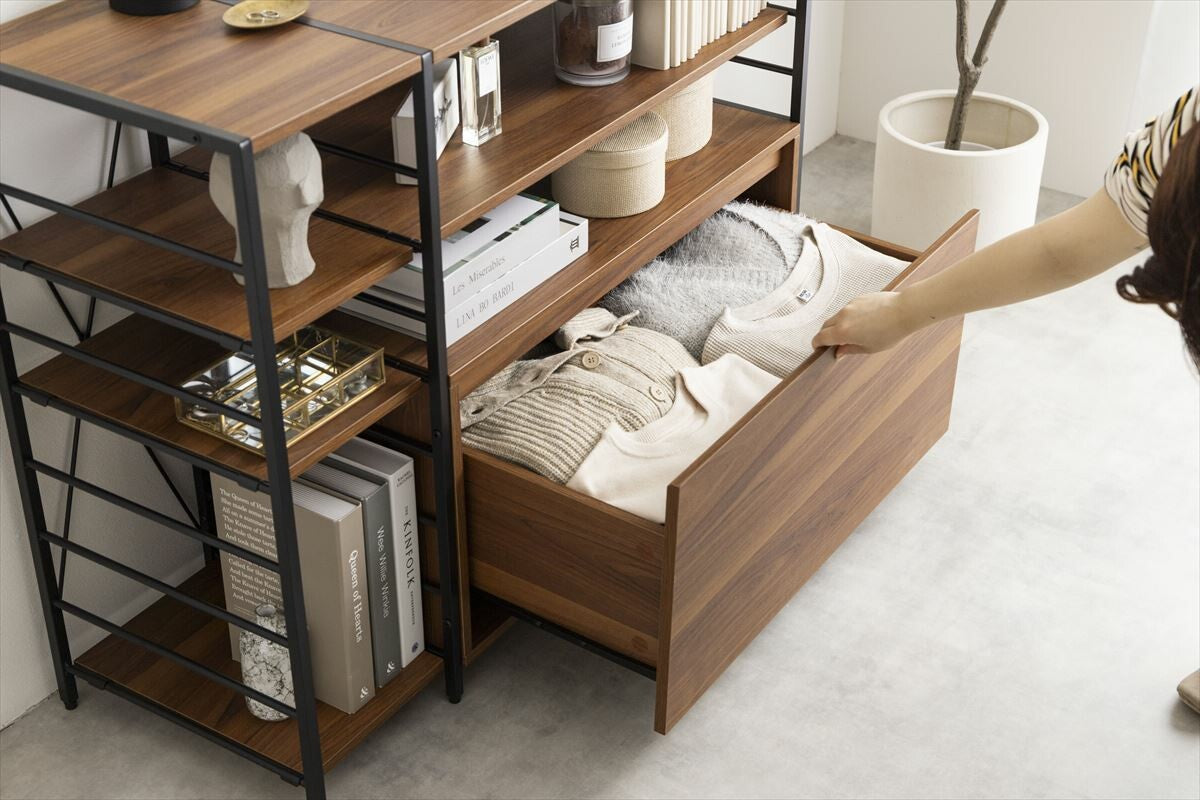 【幅105cm】Carter 引き出し付きシェルフラック