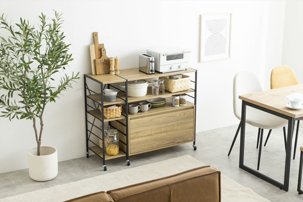 ◍オープン収納と引き出し収納の2種類の収納スペースにより、見せるも隠すもこれ1台で。