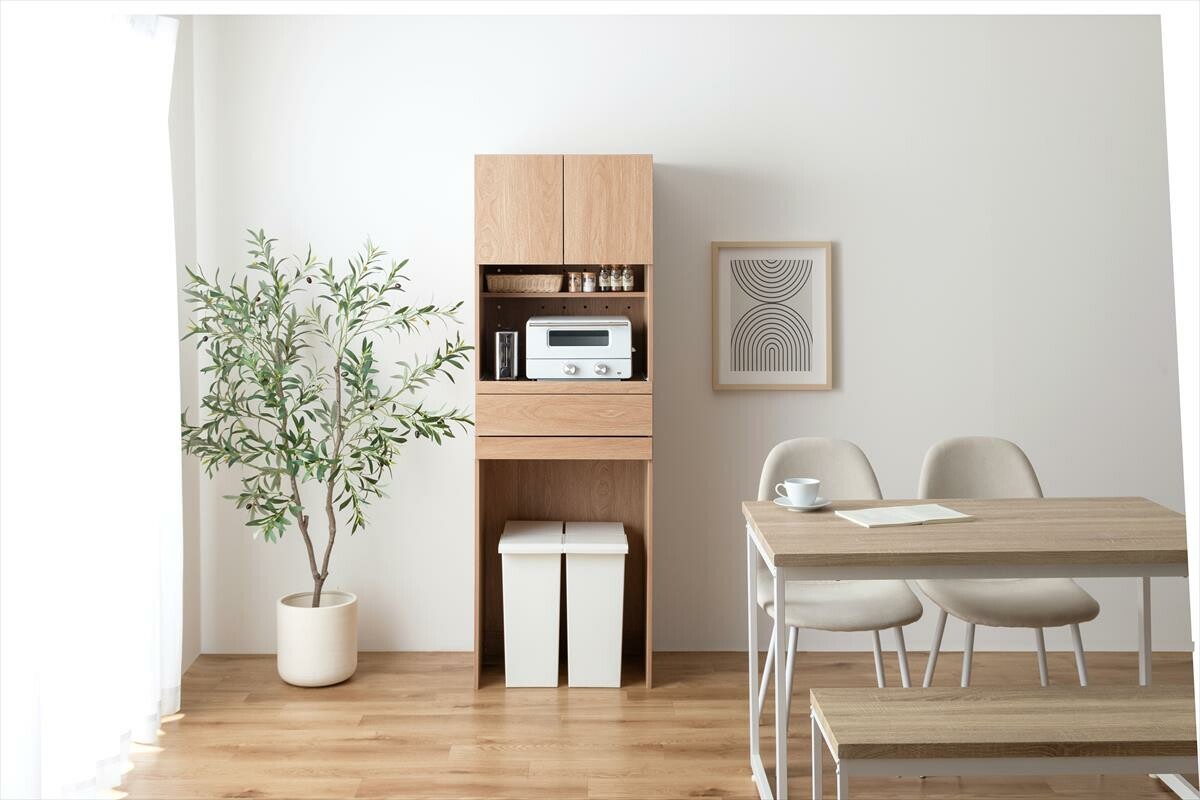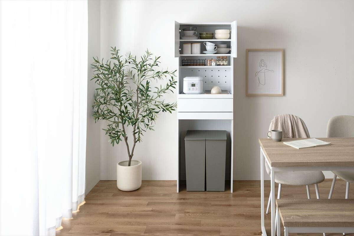 ◍幅58cmとスリムサイズでお部屋に圧迫感を与えないため、キッチンのちょっとした隙間や、スペースに余裕がないお部屋にもピッタリです。