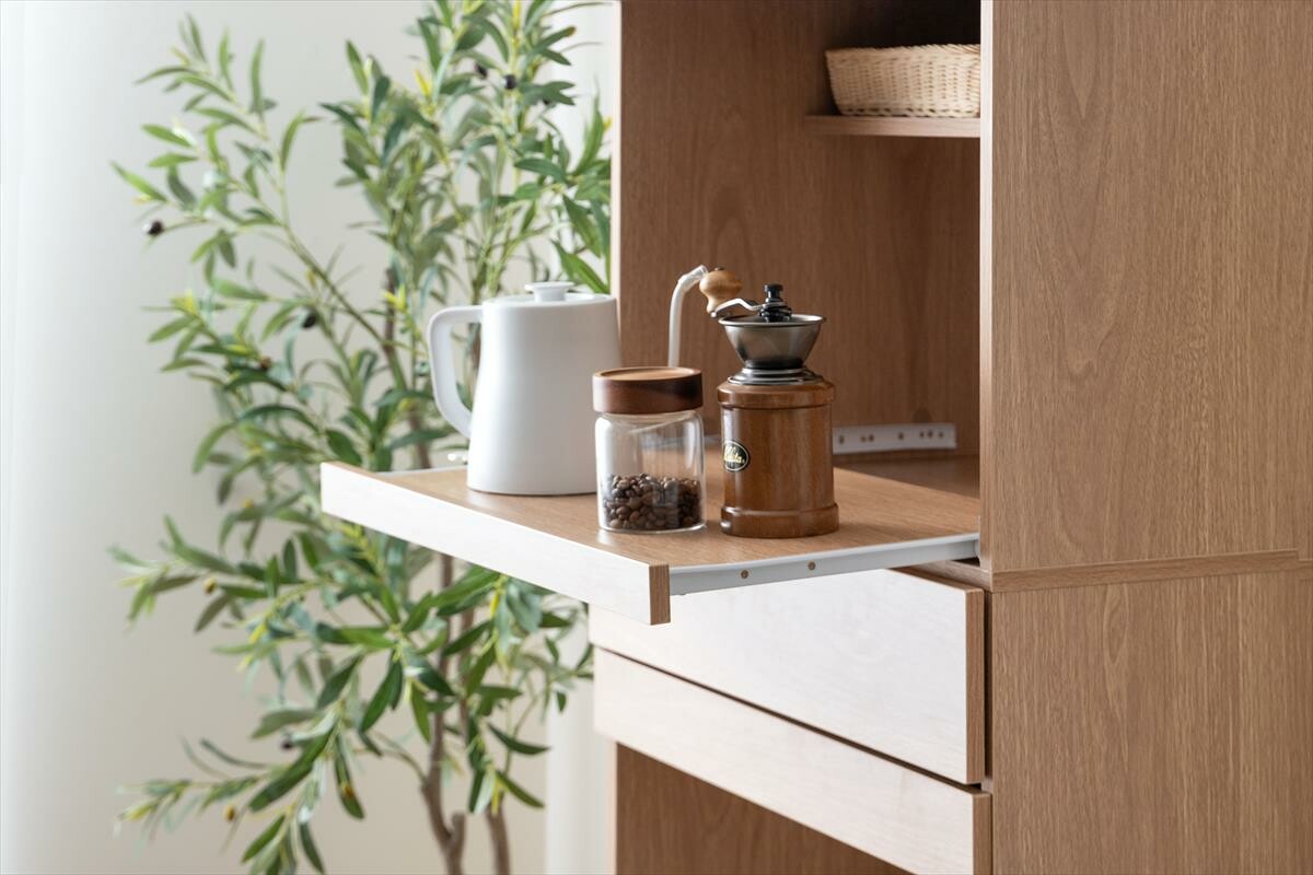 ◍収納には可動棚やスライド収納を採用し、普段の作業を快適にする便利な設計に。