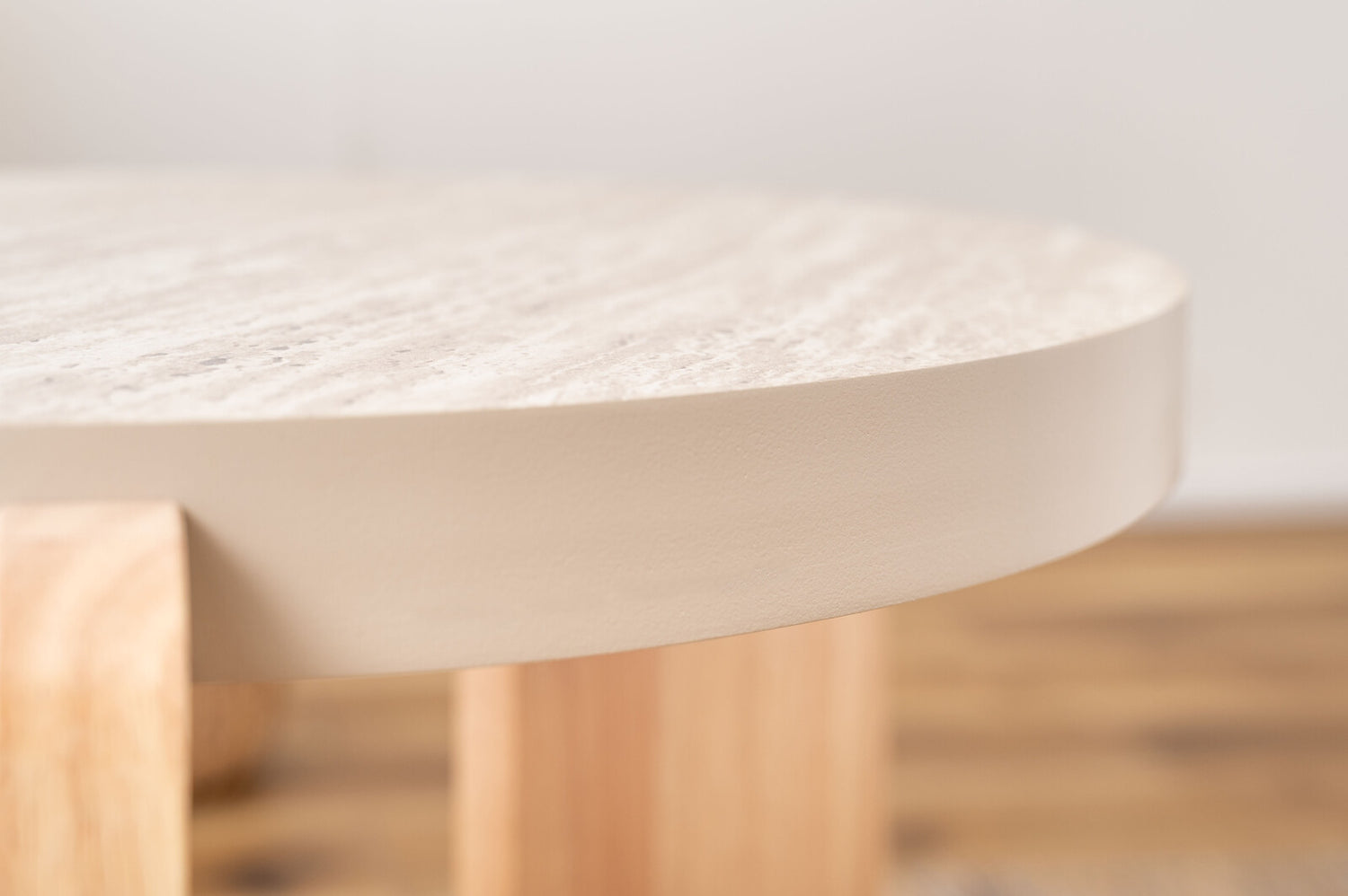 ◍優しい色味と角の丸いフォルムが特徴的な、シンプルで落ち着いたテーブル。