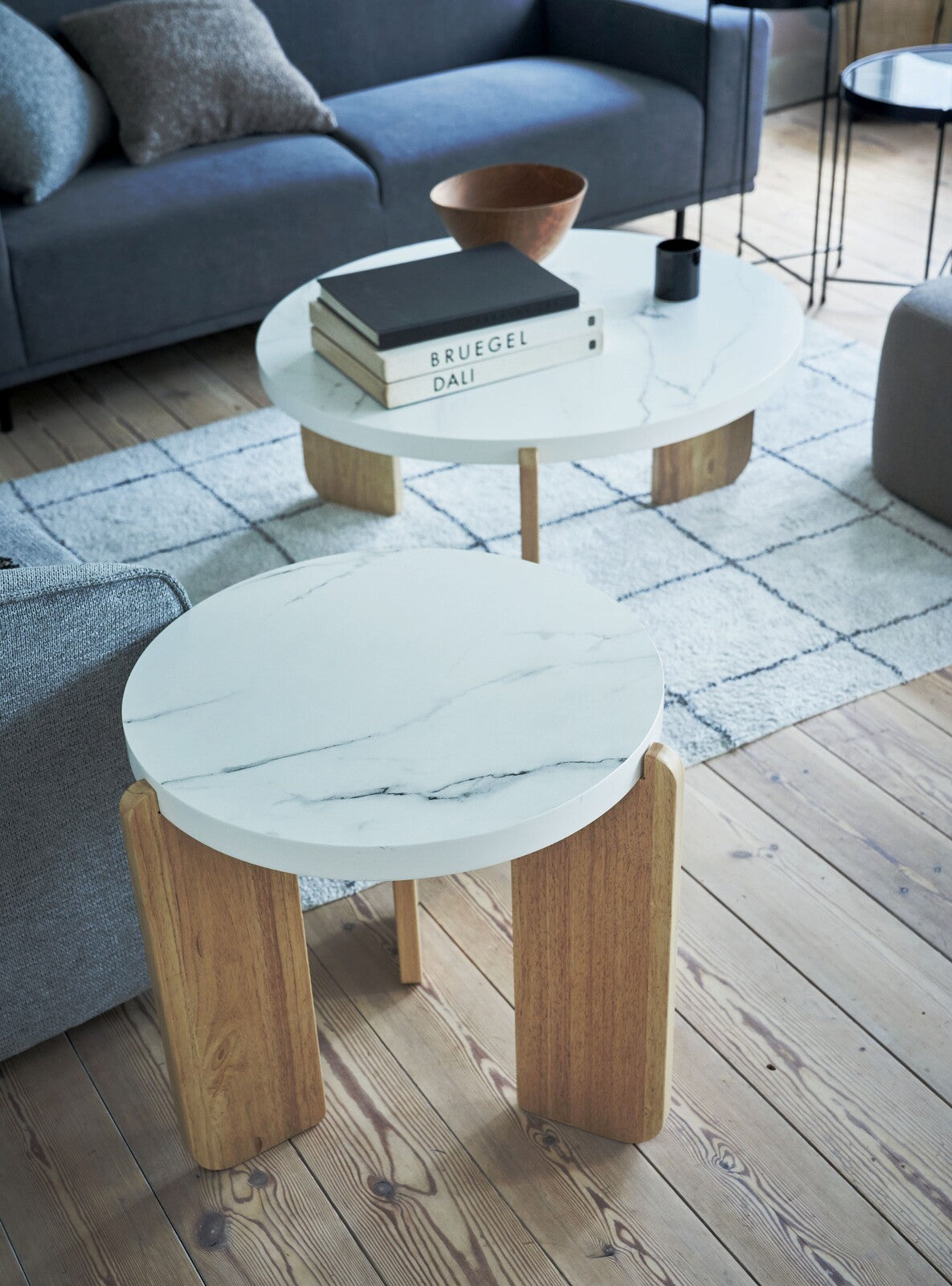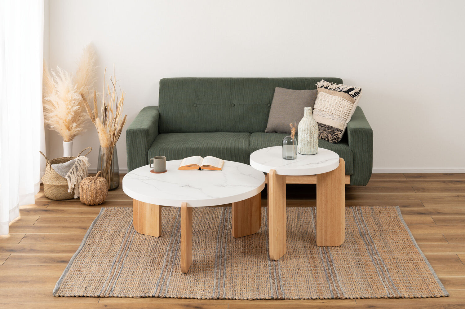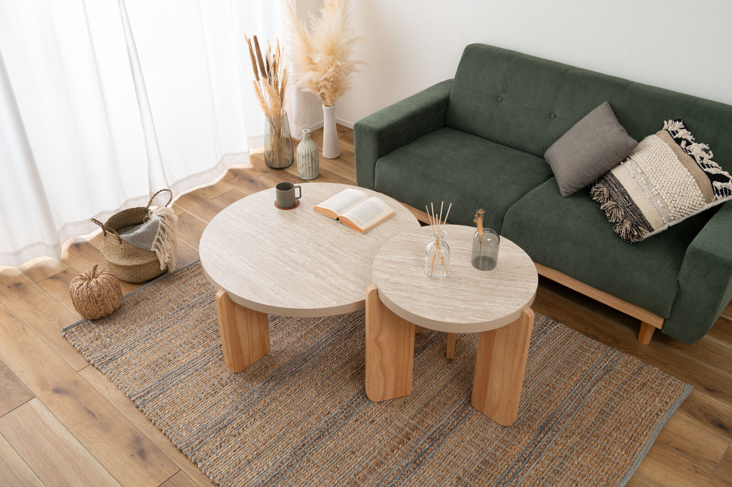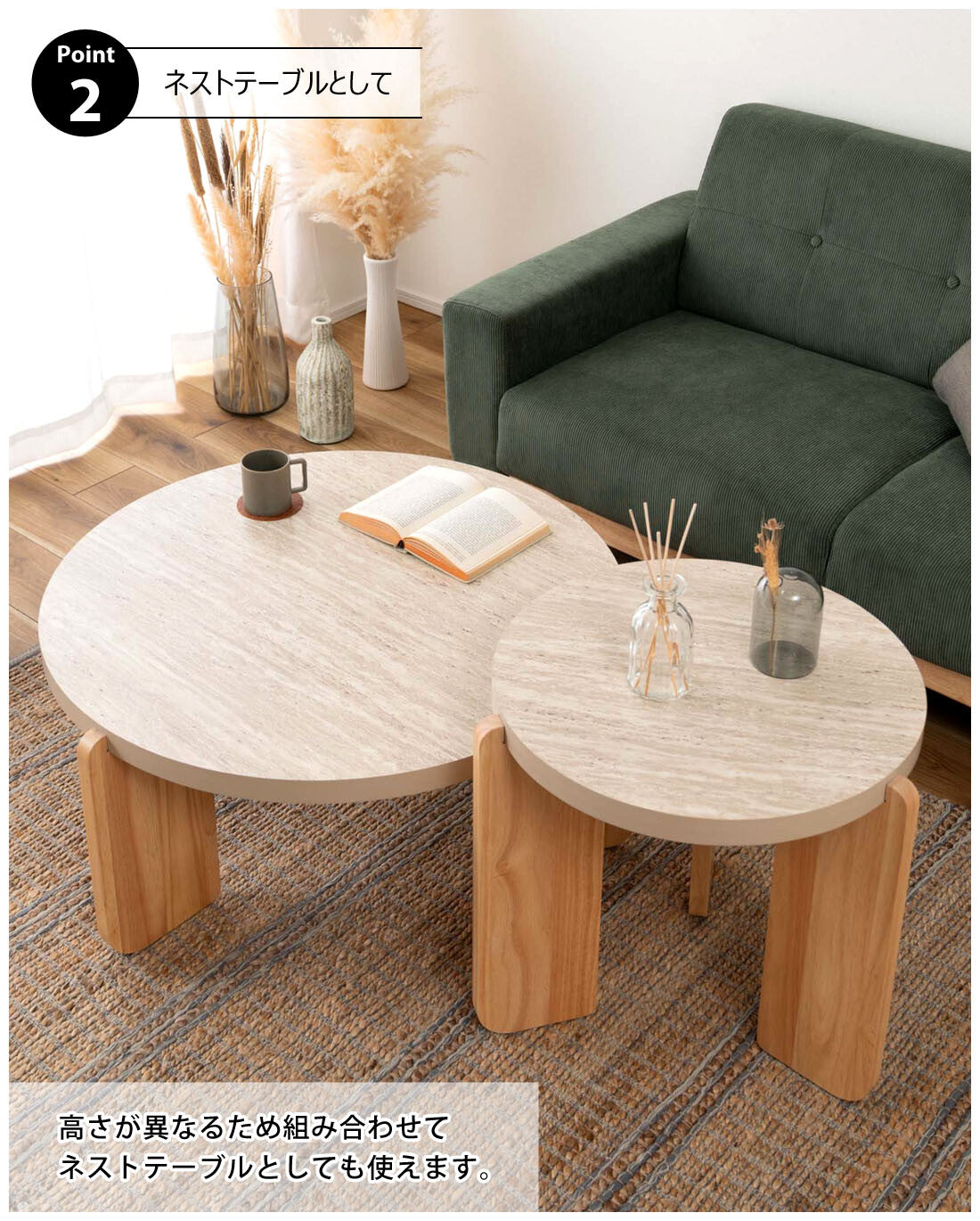◍幅53×高さ50cmのSサイズと幅83×高さ38cmのLサイズを組み合わせてネストテーブルとしても。