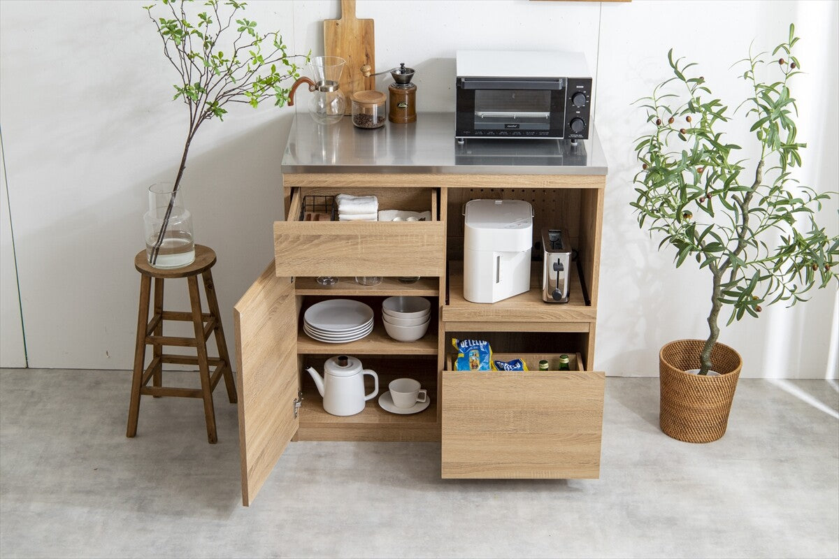 【耐荷重】ステンレス天板:約25kg、スライドトレー:約8kg、上段引き出し収納:約3kg、