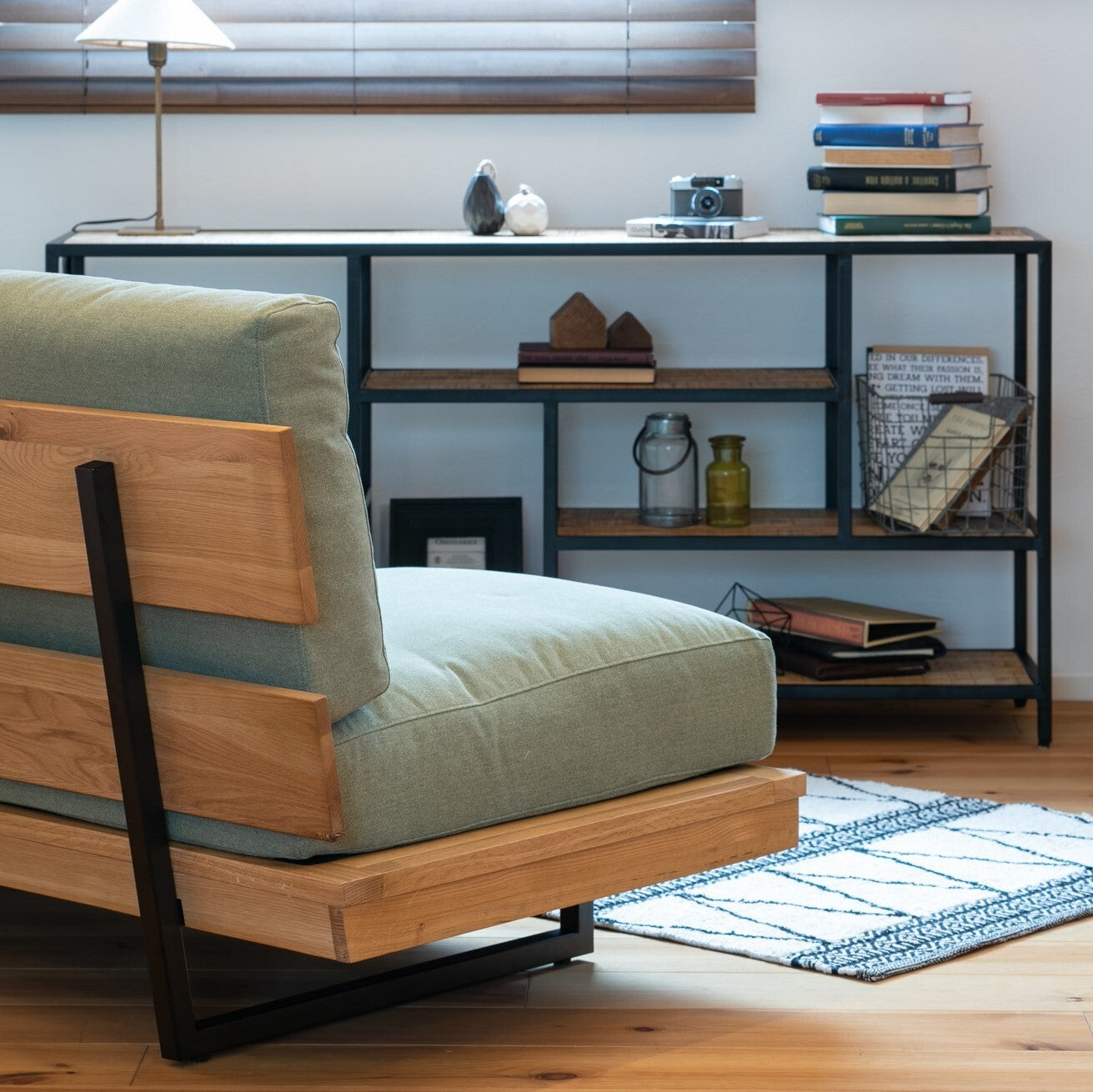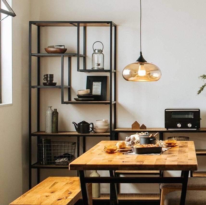 ◍アイアンとダメージ加工の無垢材のコンビ!