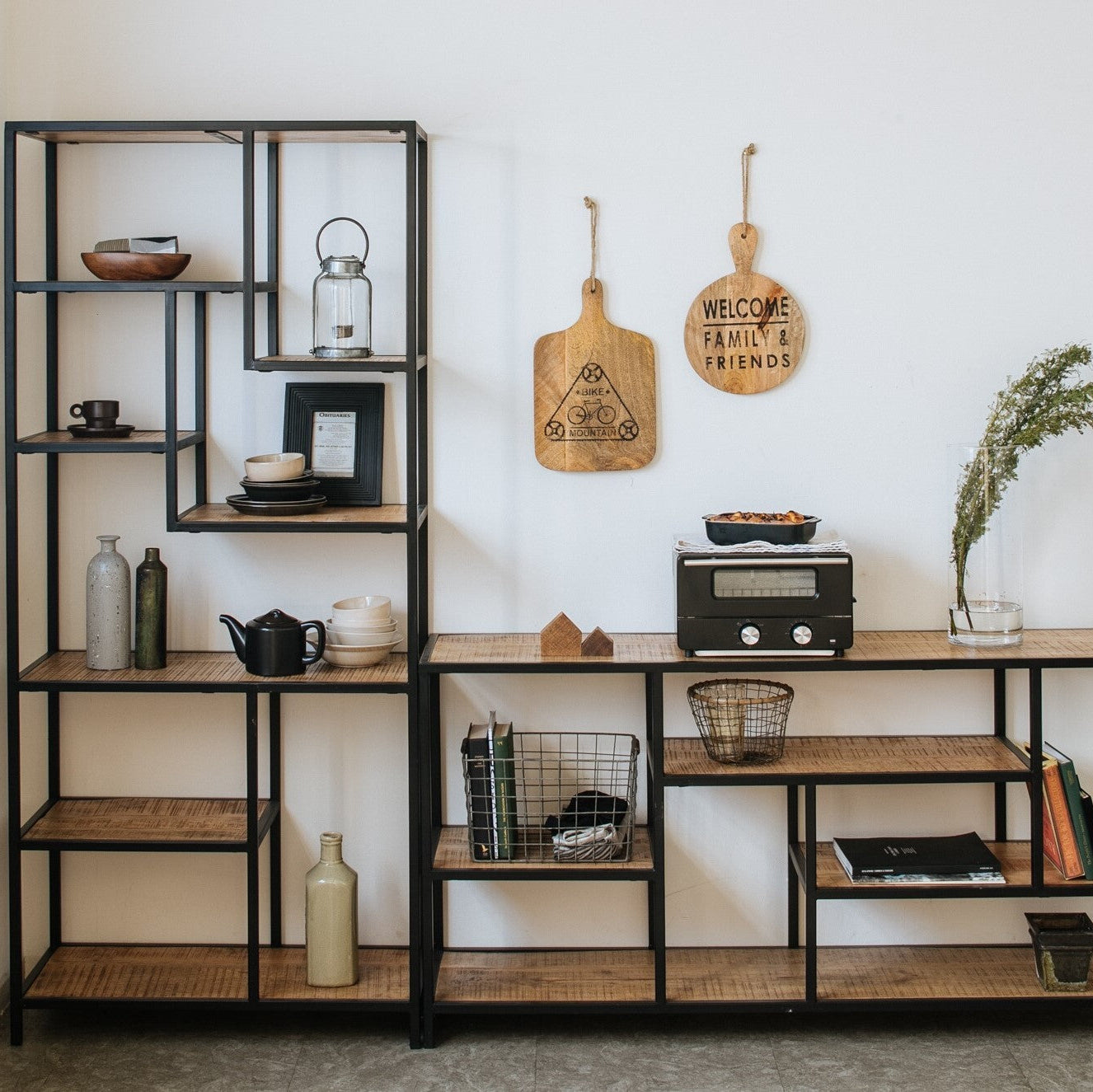◍あえて不規則に棚を配置したオープンシェルフです!