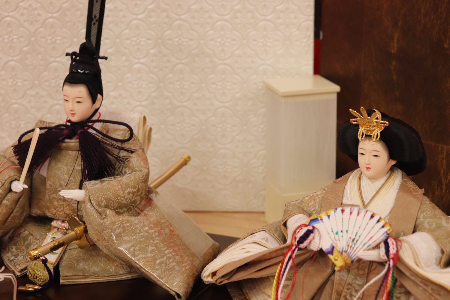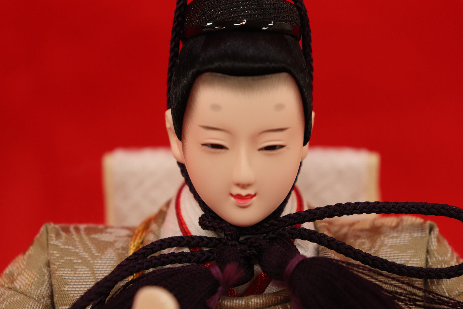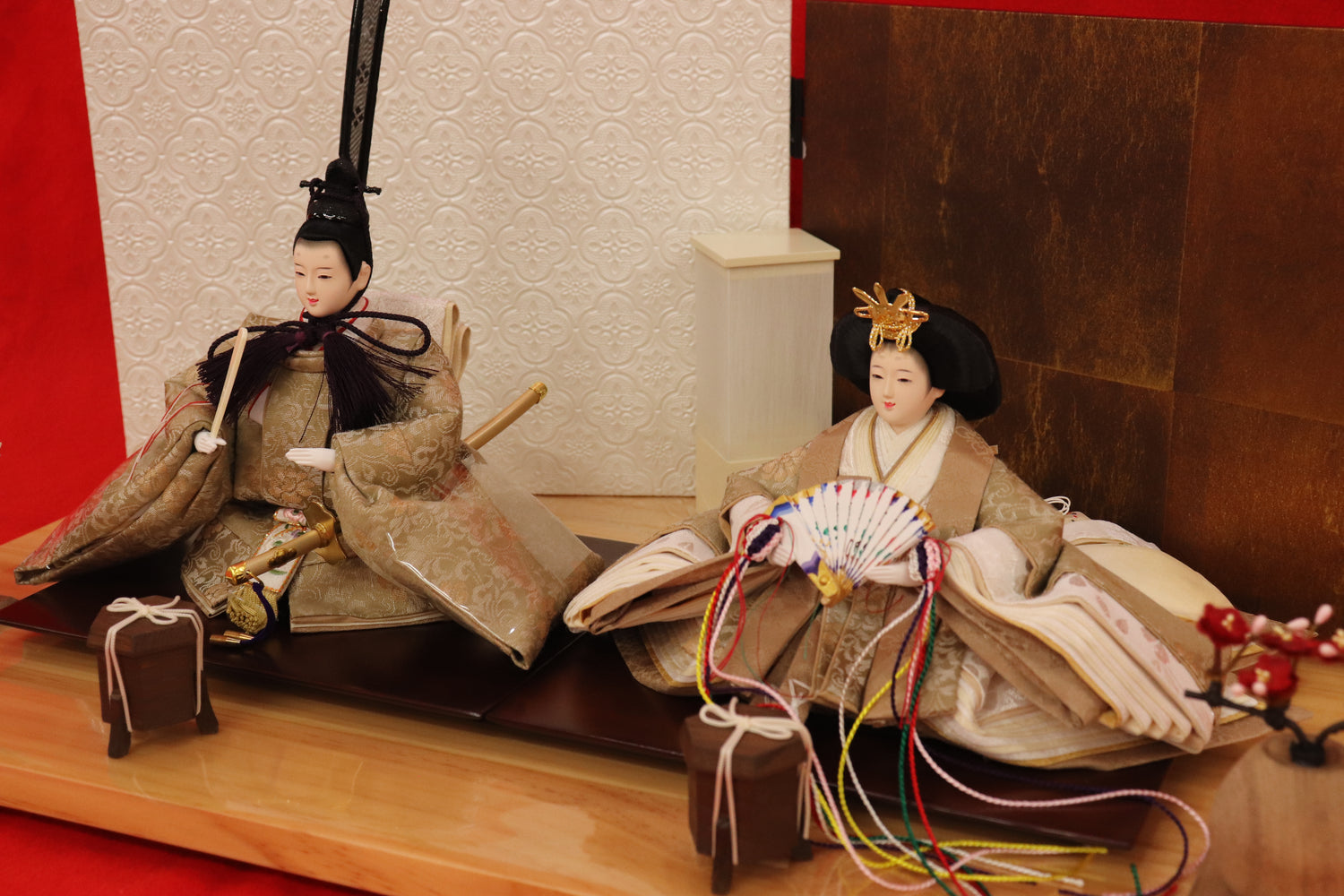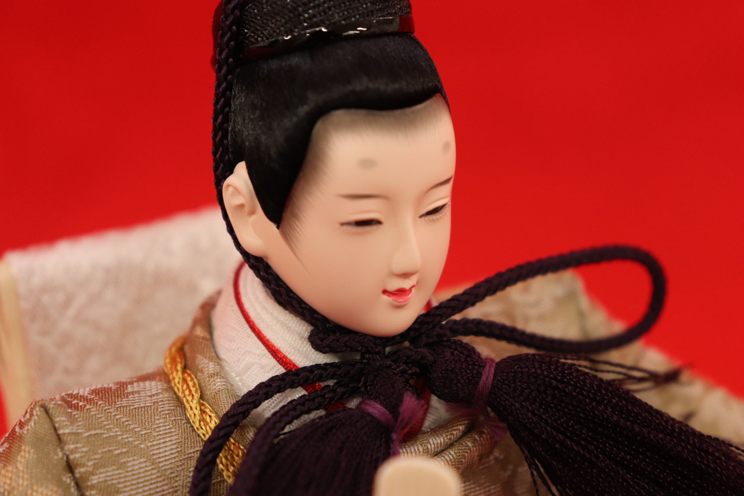 落ち着き感のある親王様の衣装と非対称の屏風が特徴的な作風です。