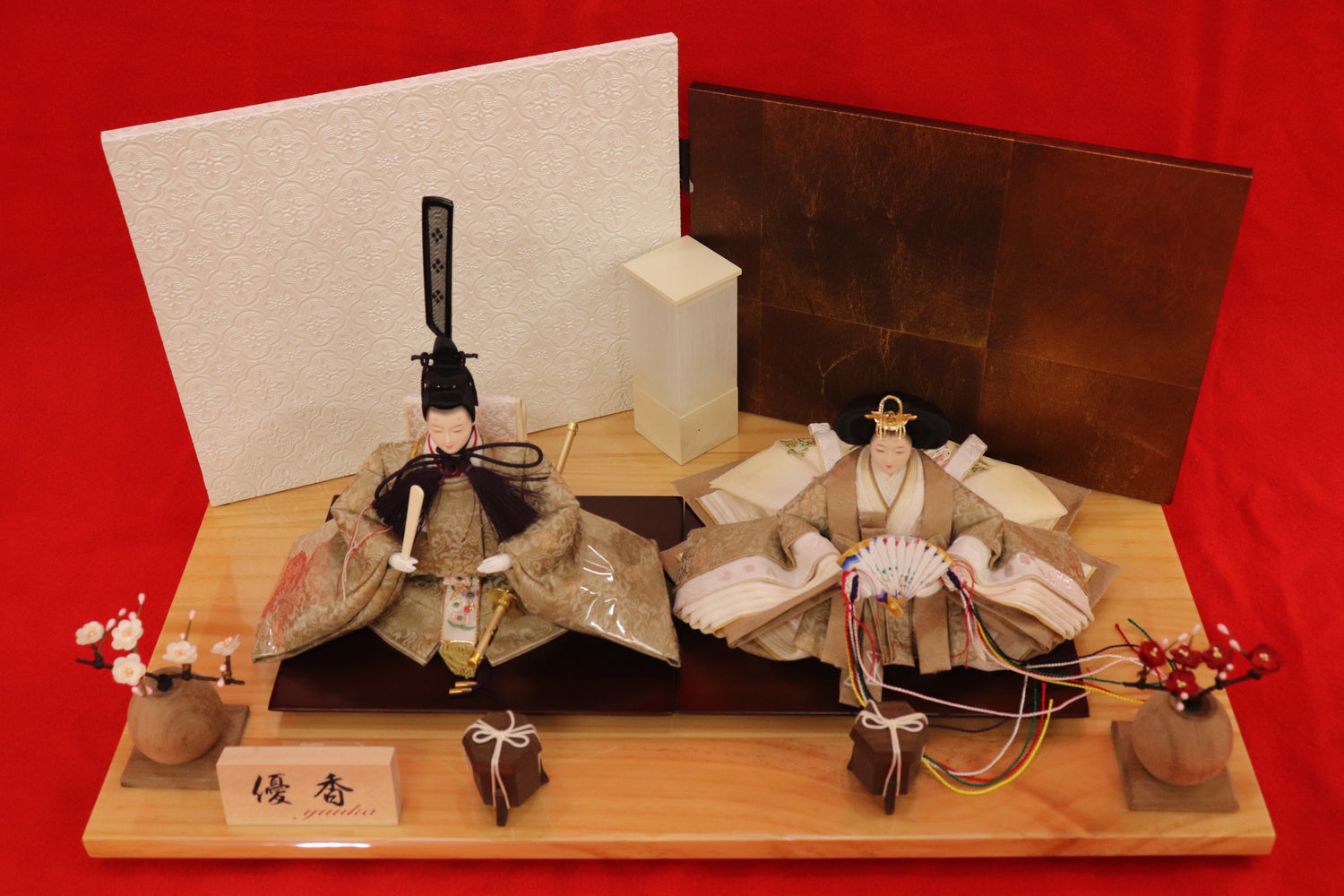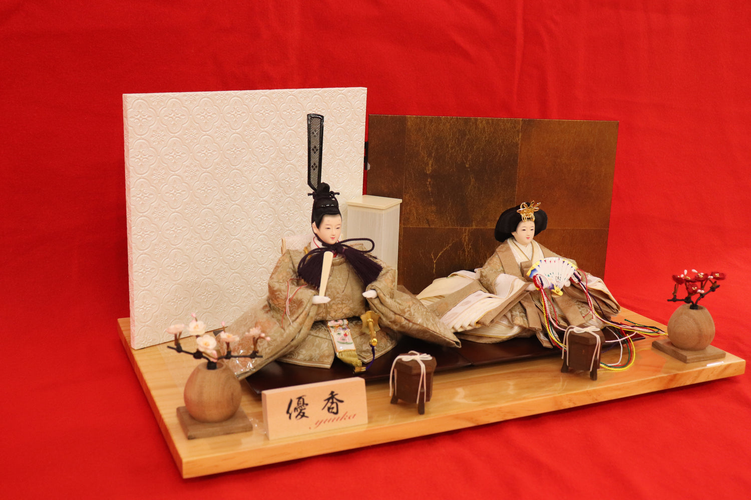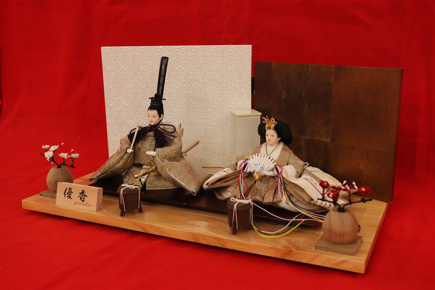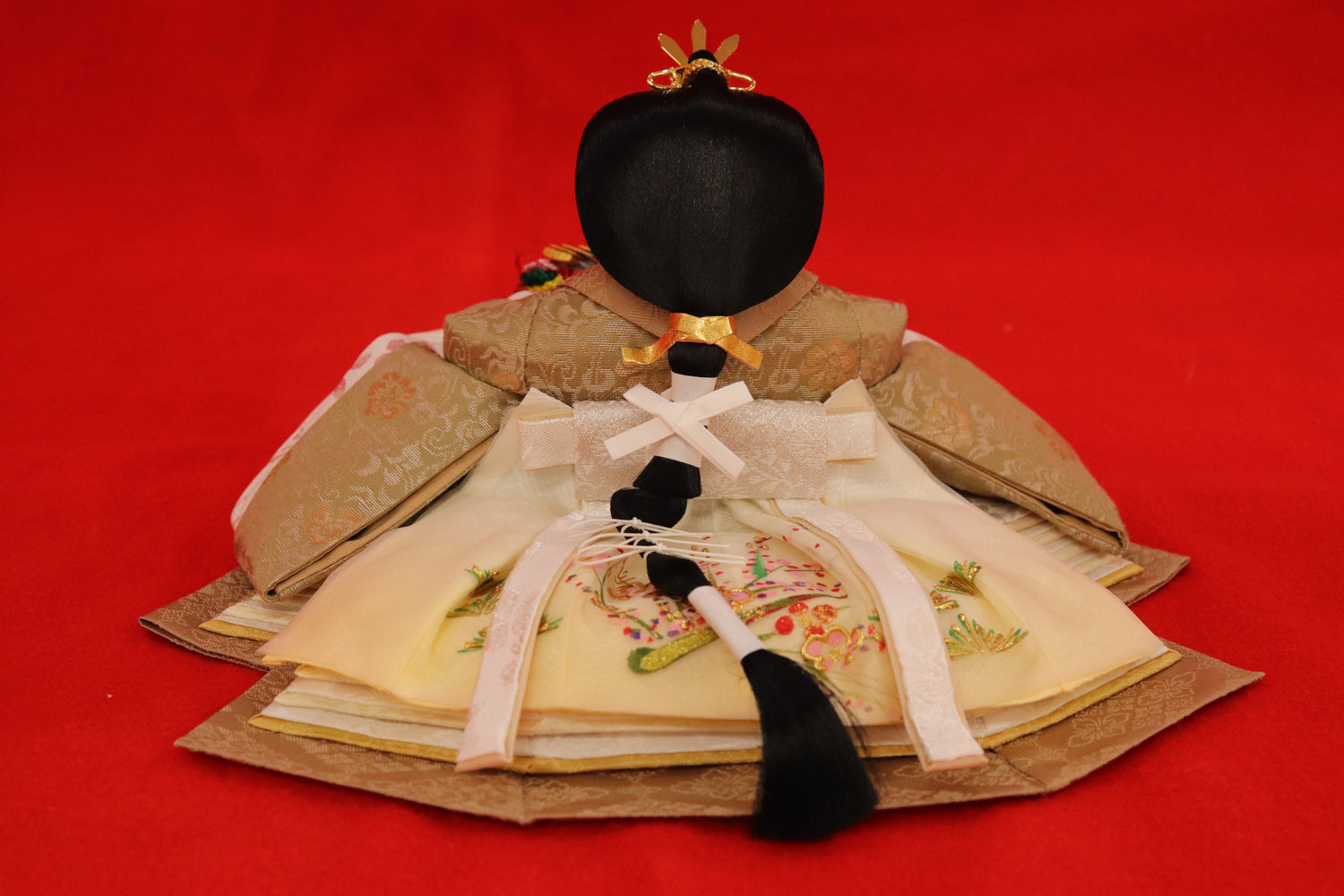 落ち着き感のある親王様の衣装と非対称の屏風が特徴的な作風です。