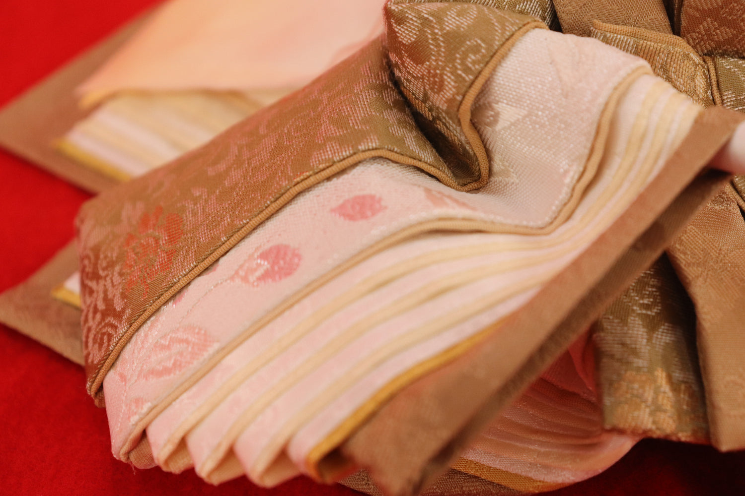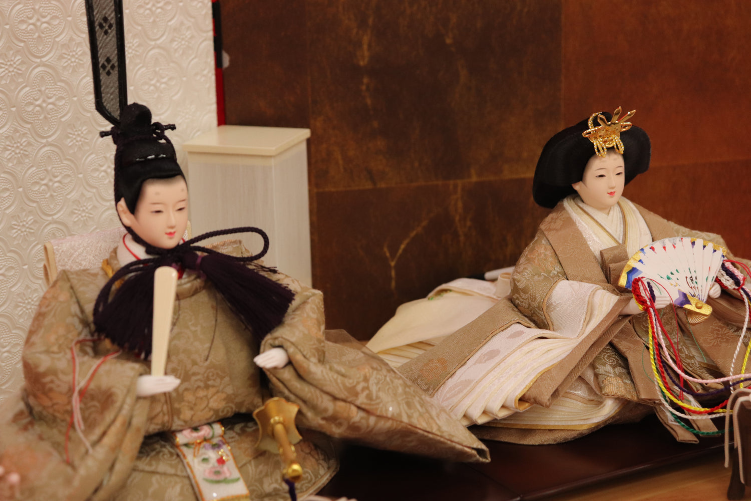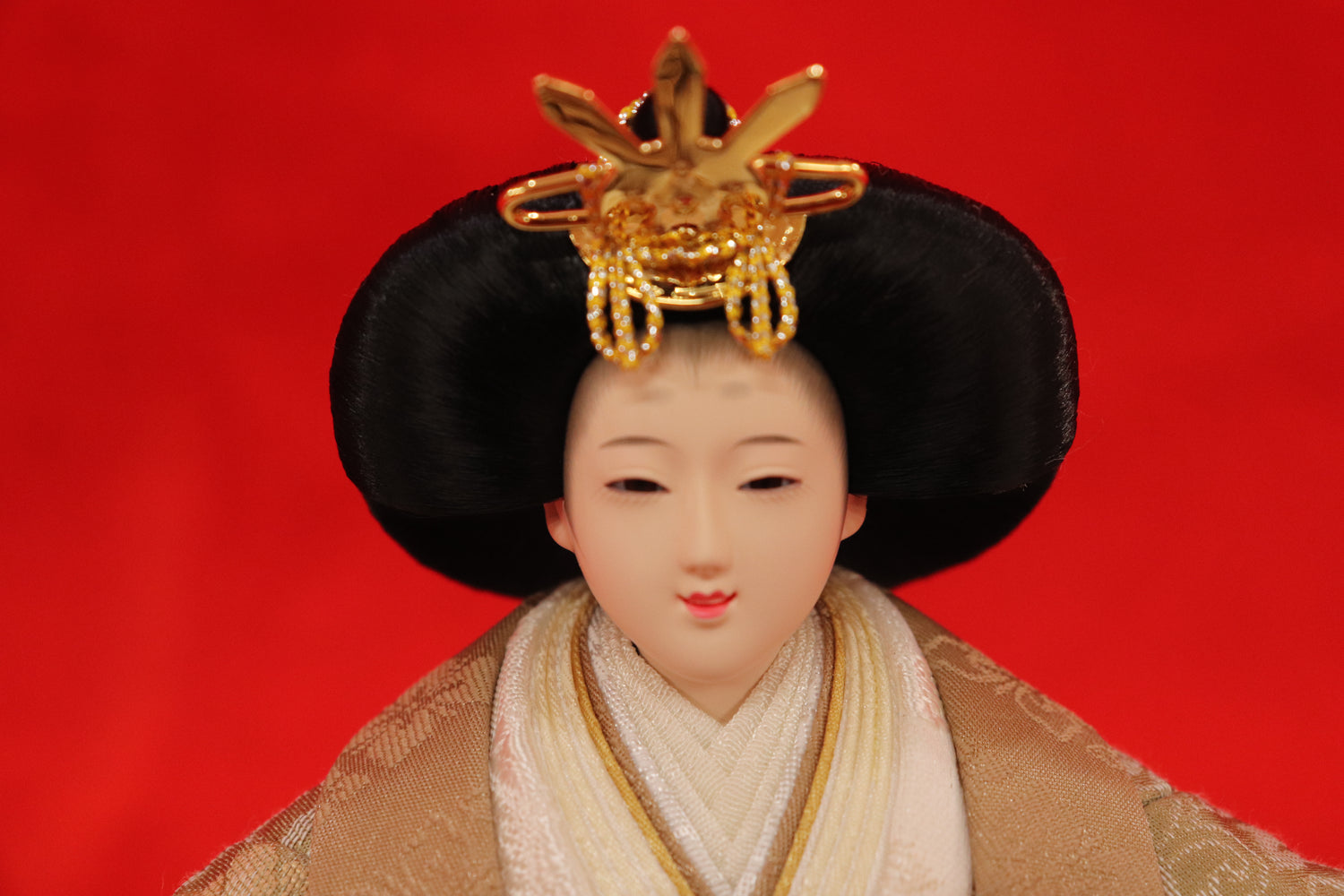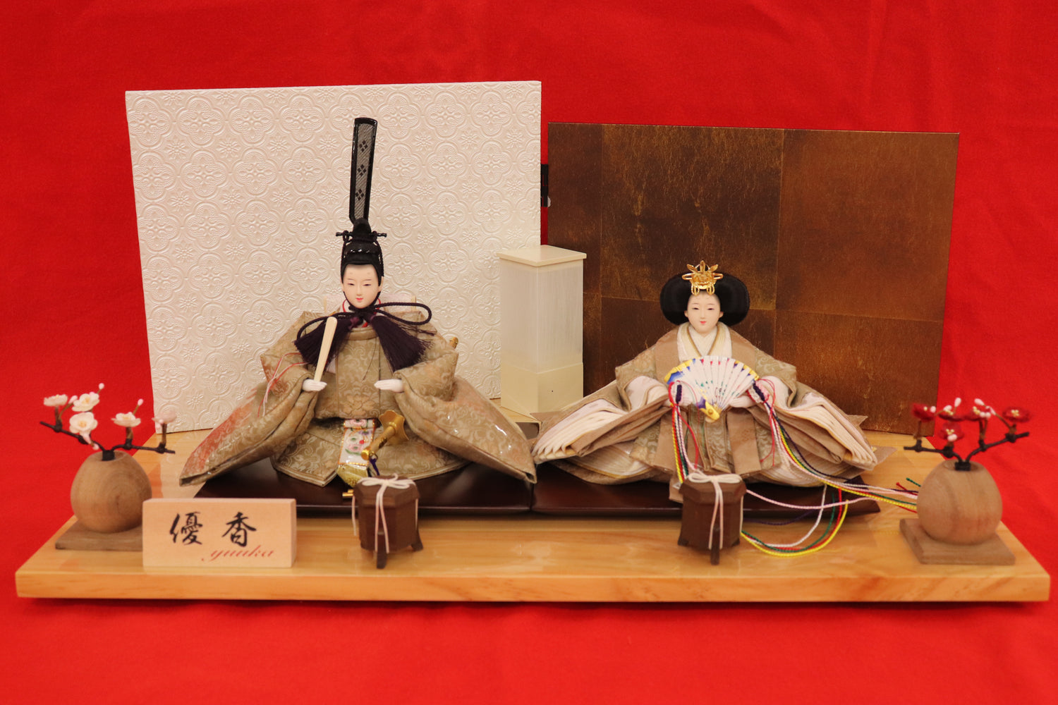 落ち着き感のある親王様の衣装と非対称の屏風が特徴的な作風です。