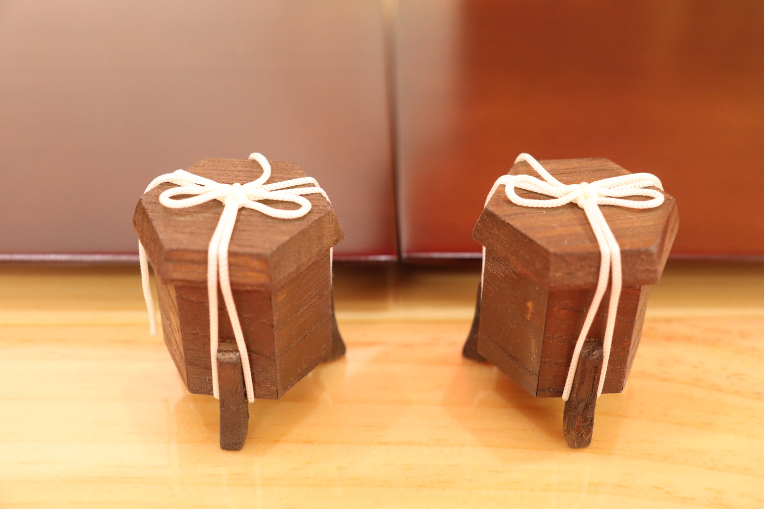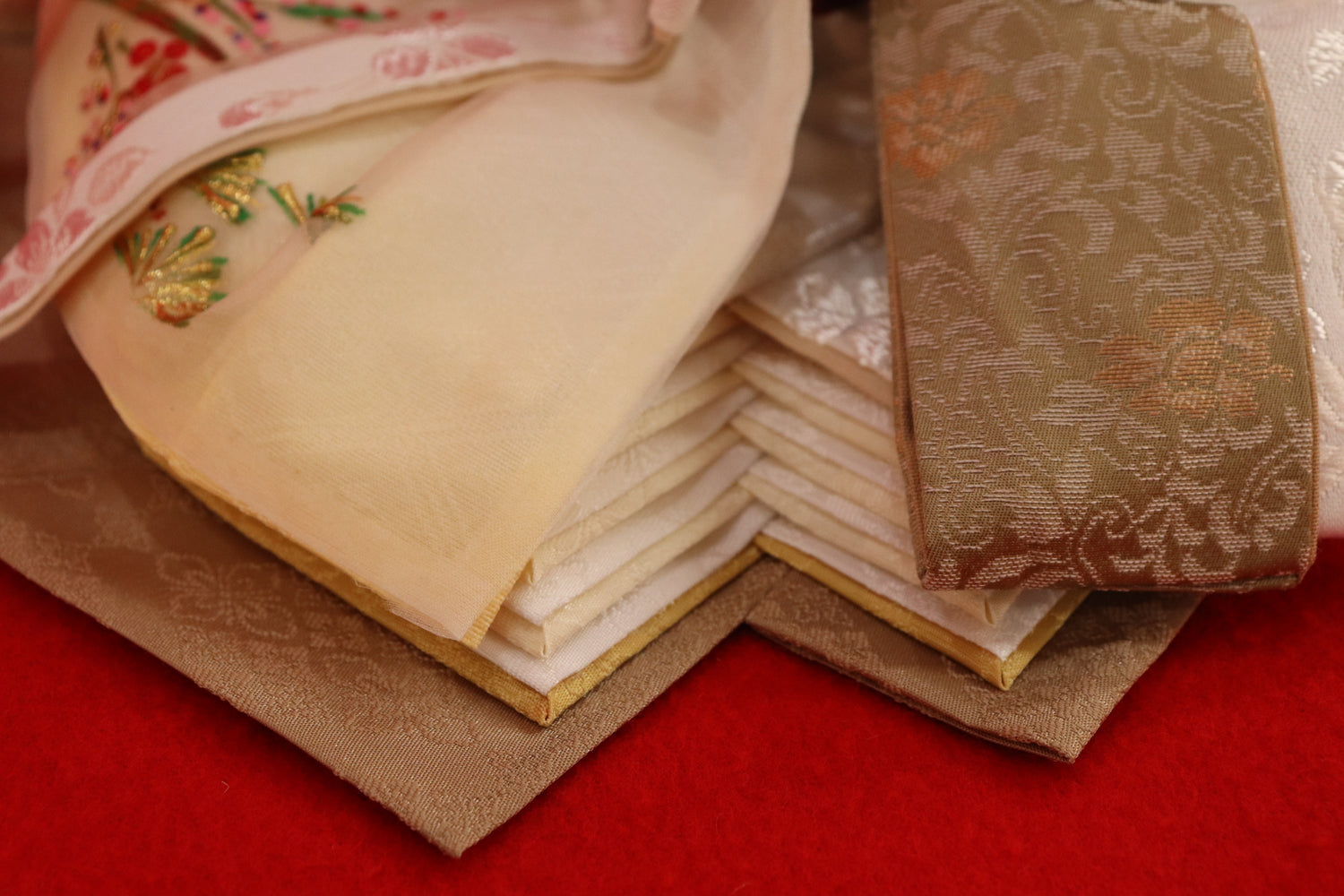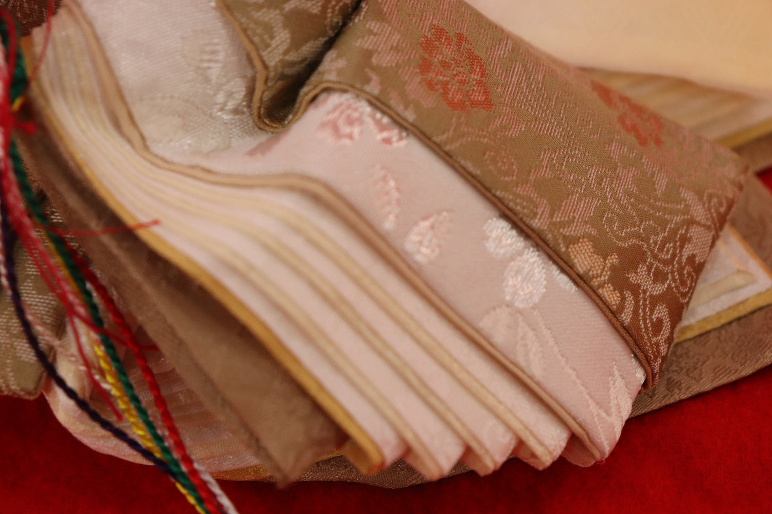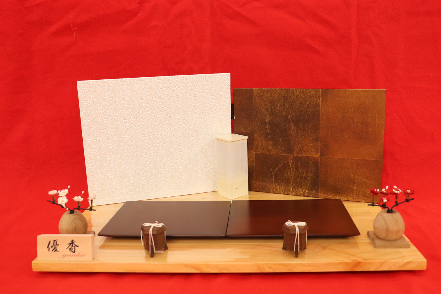 落ち着き感のある親王様の衣装と非対称の屏風が特徴的な作風です。