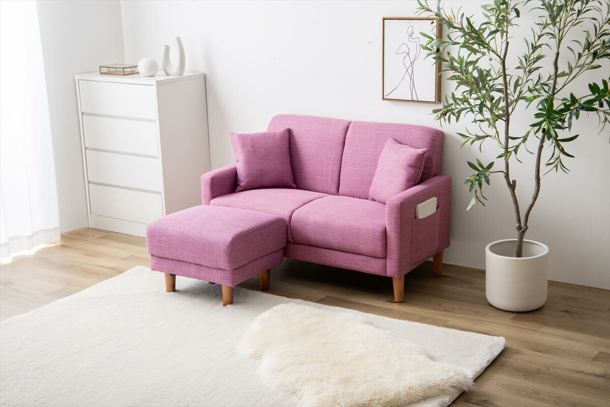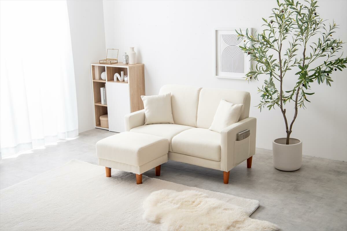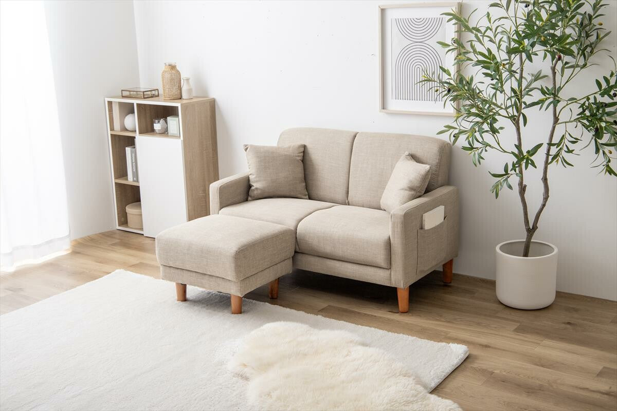 【2点セット】Emma コンパクト2人掛けソファ+オットマン