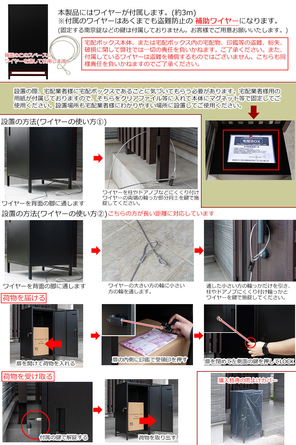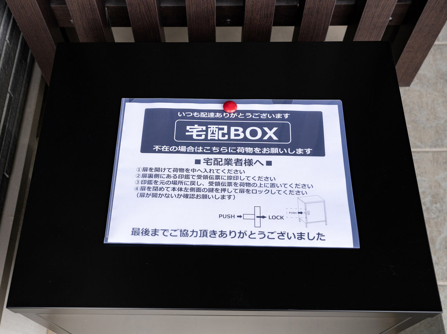 ◍一目で宅配ボックスとわかる案内用紙が付属します。クリアファイル等をご用意いただき、マグネット等で宅配業者様にわかりやすい場所に固定してご使用ください。