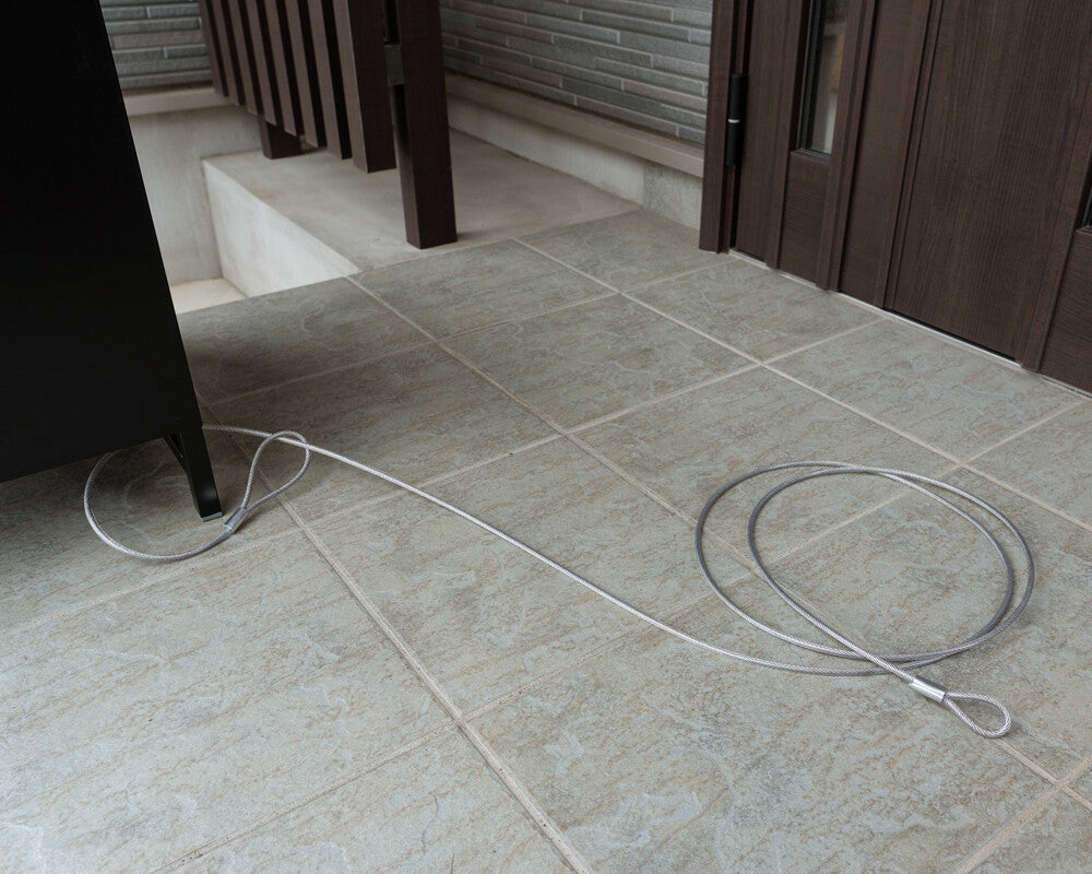 ◍ボックスと柱などを繋ぎ、盗難を防ぐ盗難防止ワイヤー(約3m)が付属します。