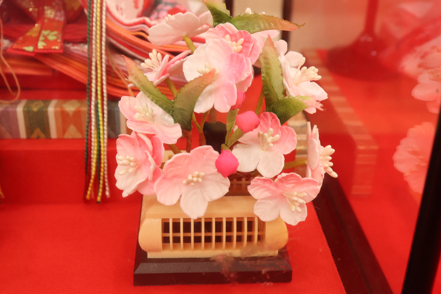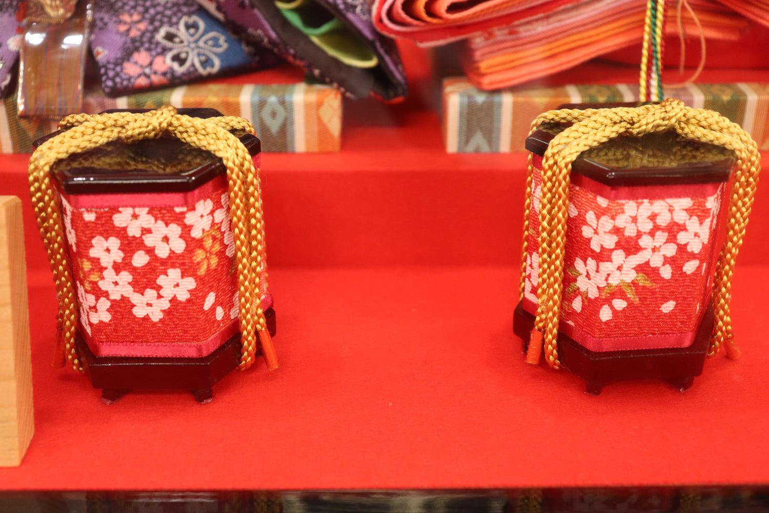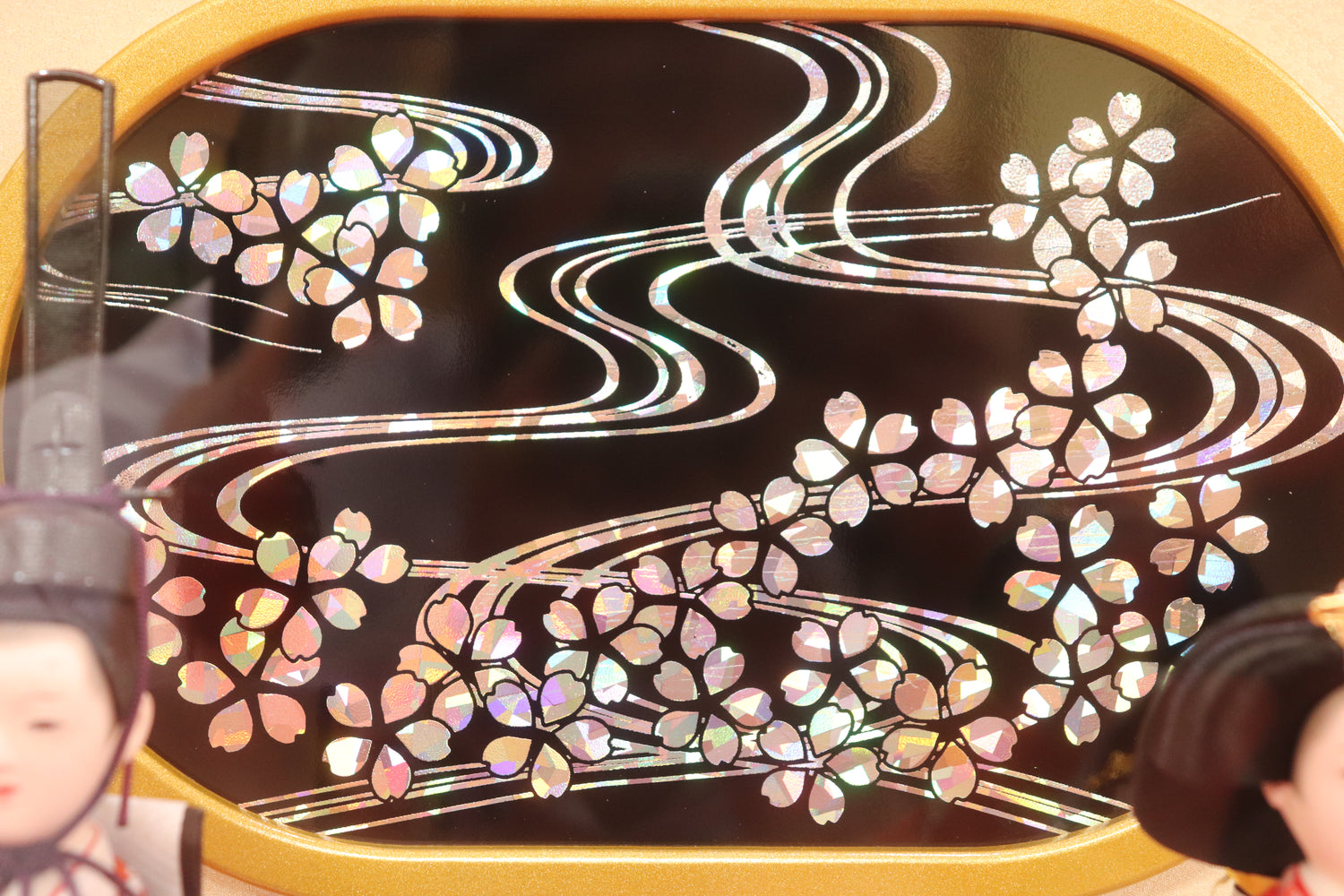 お人形の上品さもさることながら、キラキラと光る桜柄の背景も高級感をだしてます。雪洞はコンセント式で点灯します。
